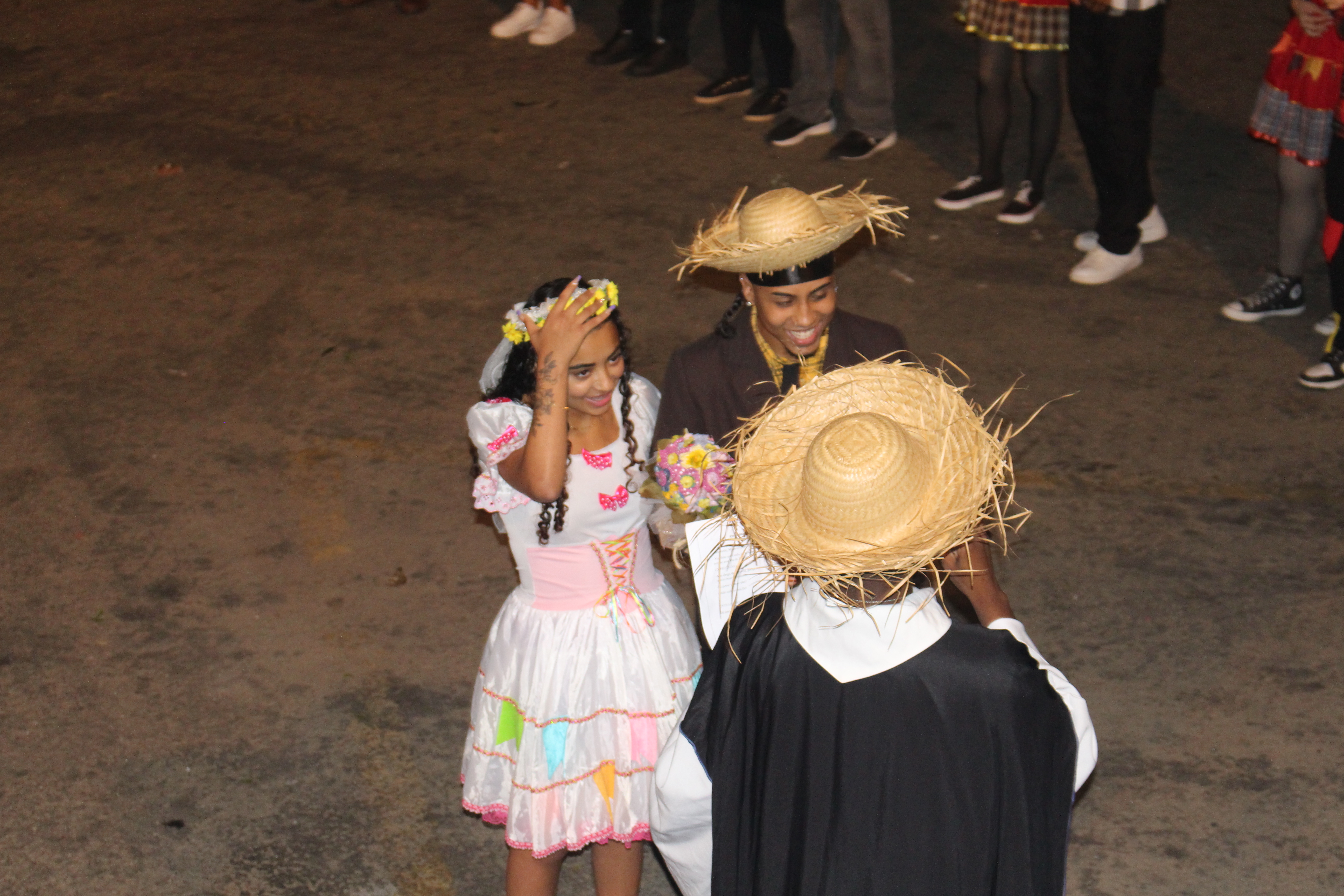Não poderia faltar, durante a exibição da quadrilha, o tradicionalíssimo casamento caipira