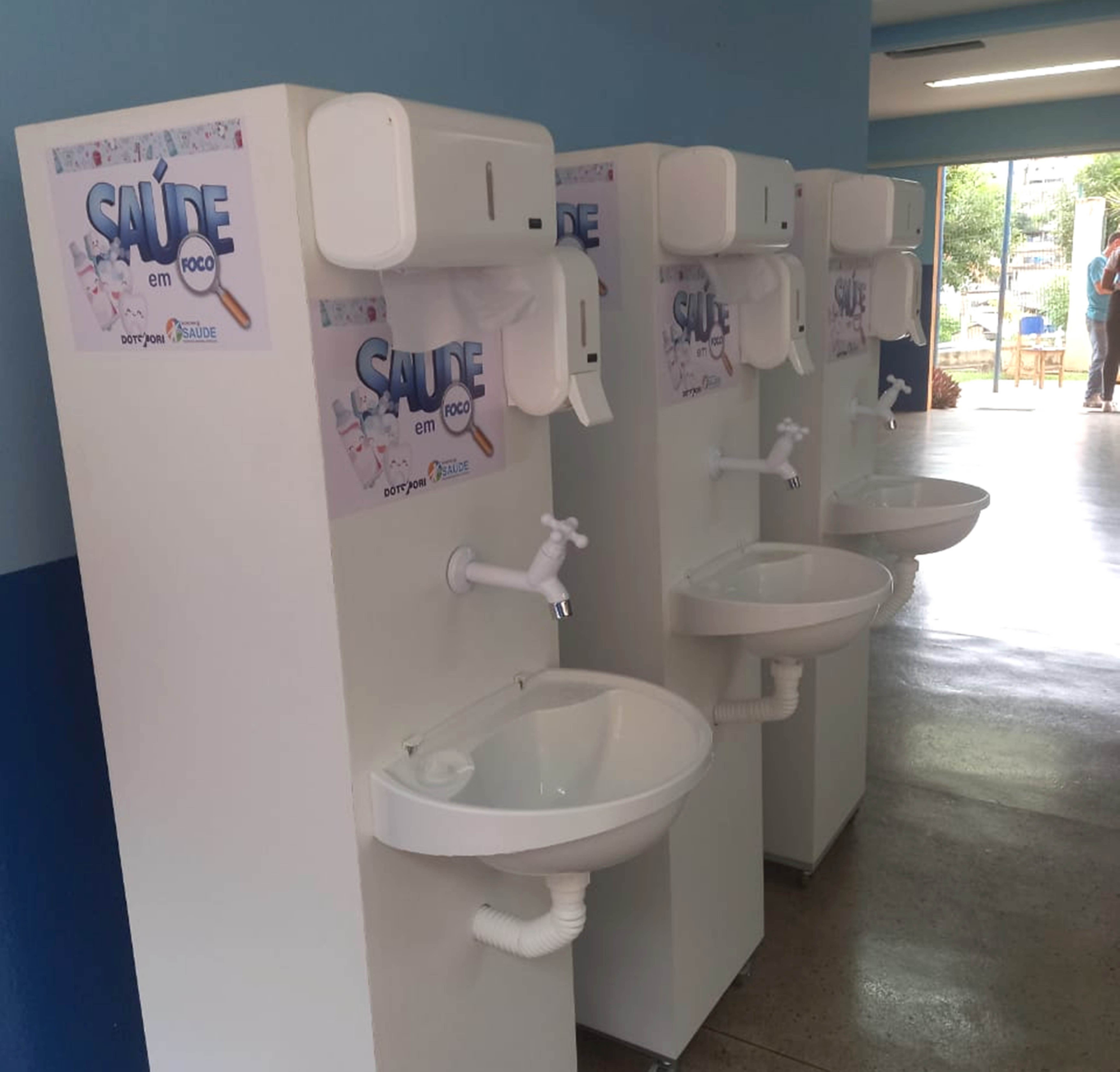 O escovódromo disponibilizado pelo Programa ‘Saúde em Foco’ para atender aos estudantes do município