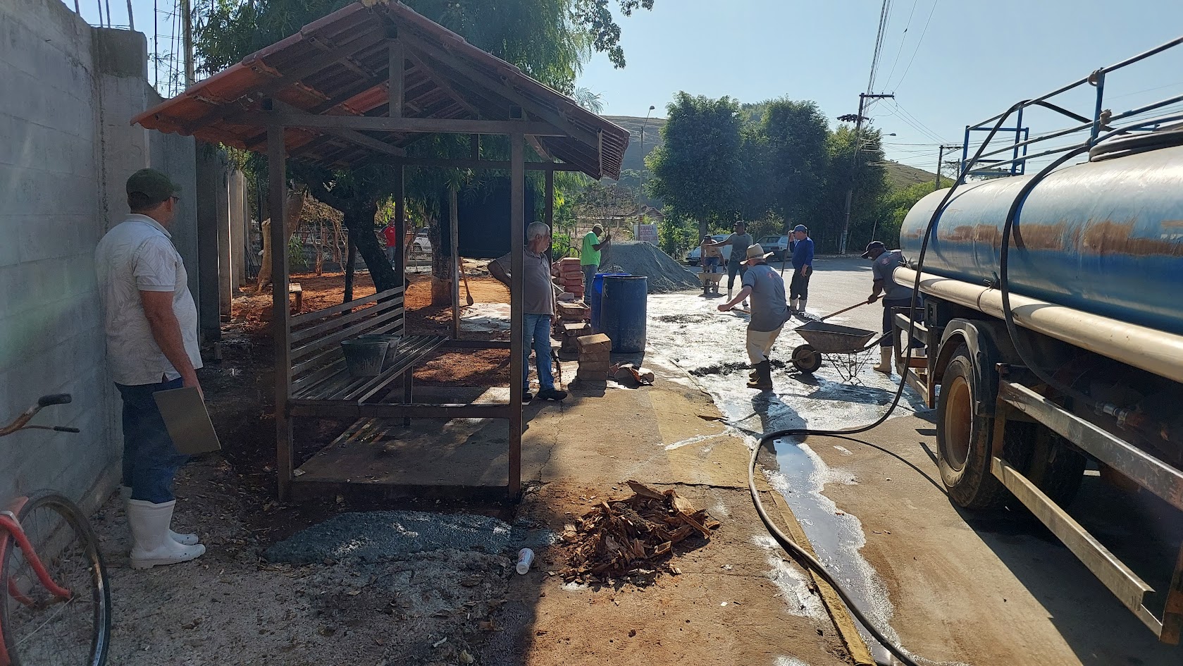 Funcionários da Secretaria de Obras e Serviços Públicos aceleram as ações de concretagem para dar sequência às benfeitorias no local