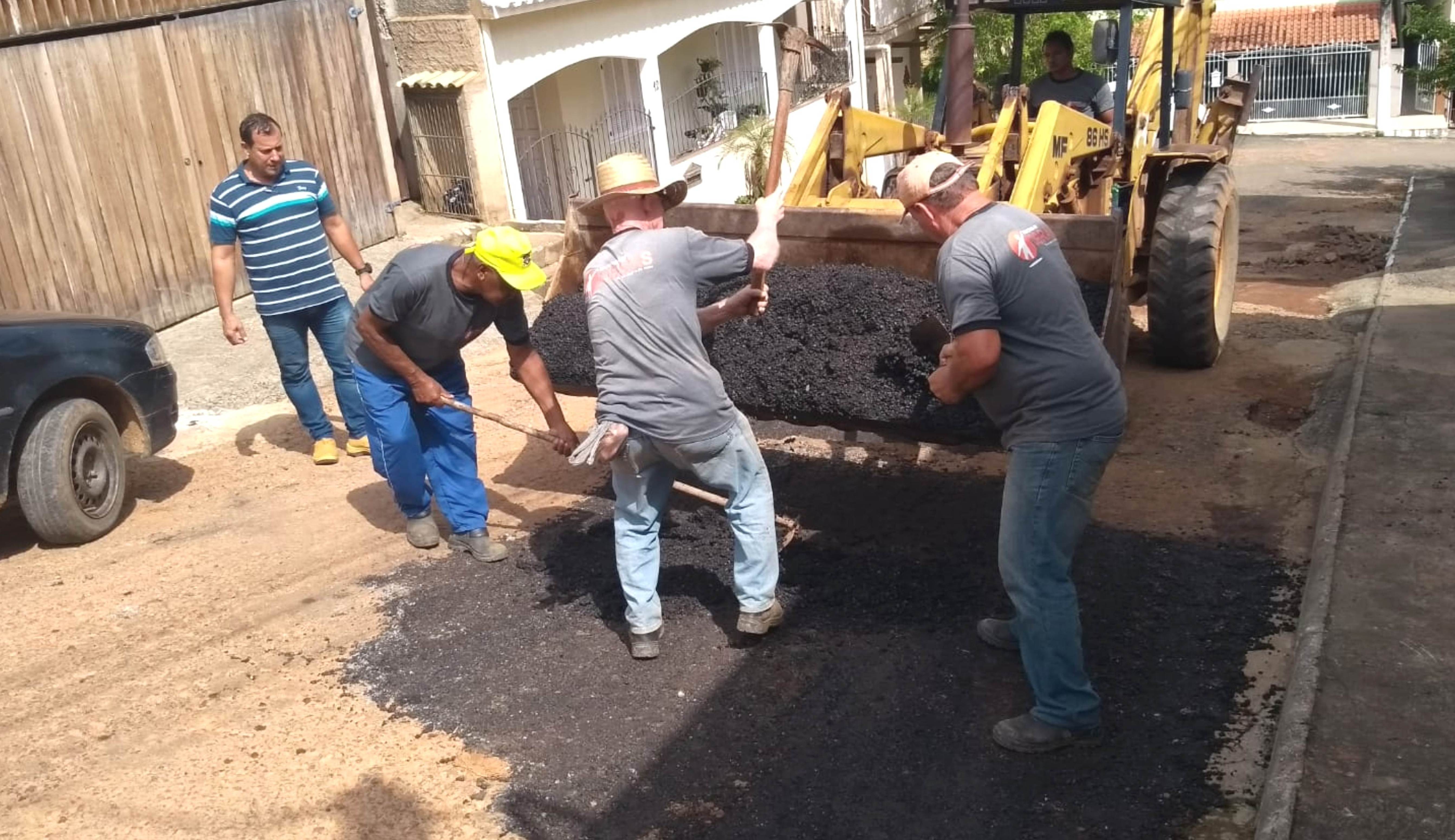 Auxiliados por uma máquina retroescavadeira, os funcionários retiraram partes do piso que ficara prejudicado pelas últimas chuvas de verão na Rua Sebastião Tupini. No lugar, foi providenciado na sequência o recapeamento asfáltico, que visa corrigir falhas e encobrir  desníveis para evitar transtornos para quem reside naquela localidade.