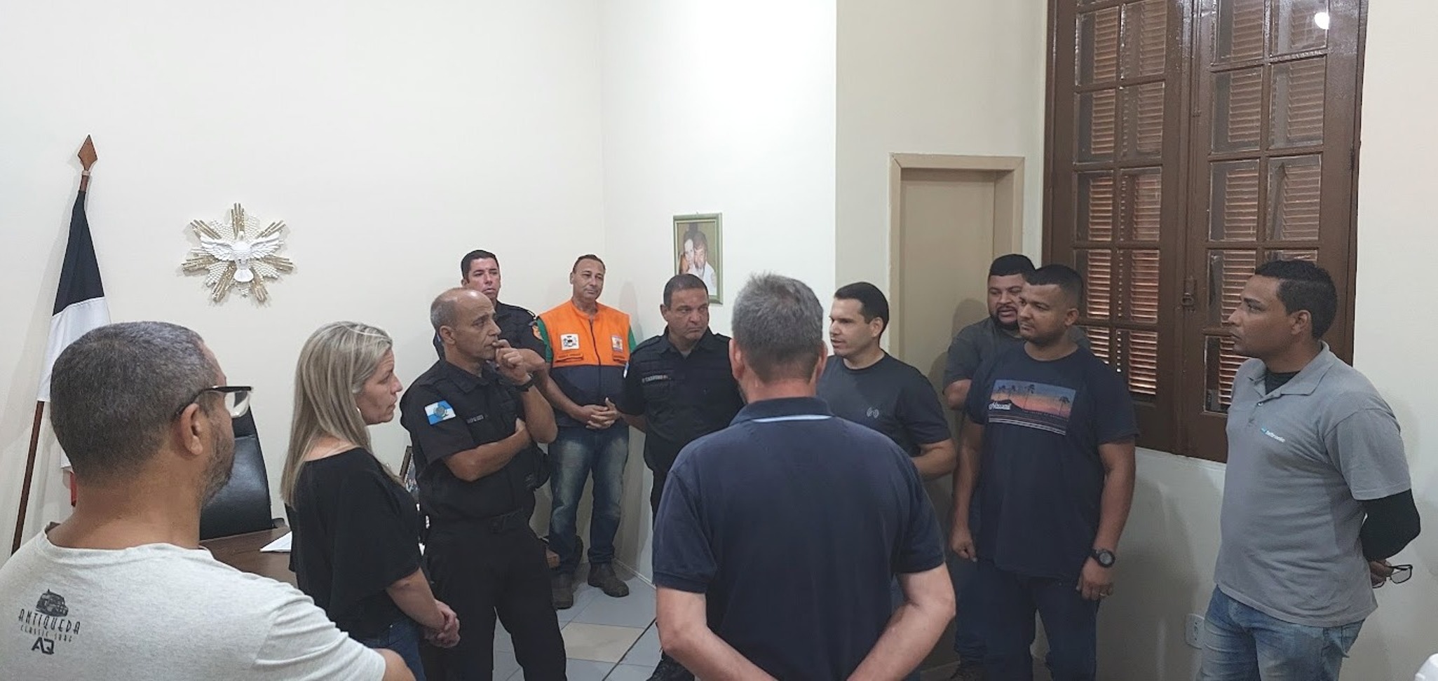 Representantes da Polícia Militar e demais integrantes do encontro conversam no Gabinete da Prefeita