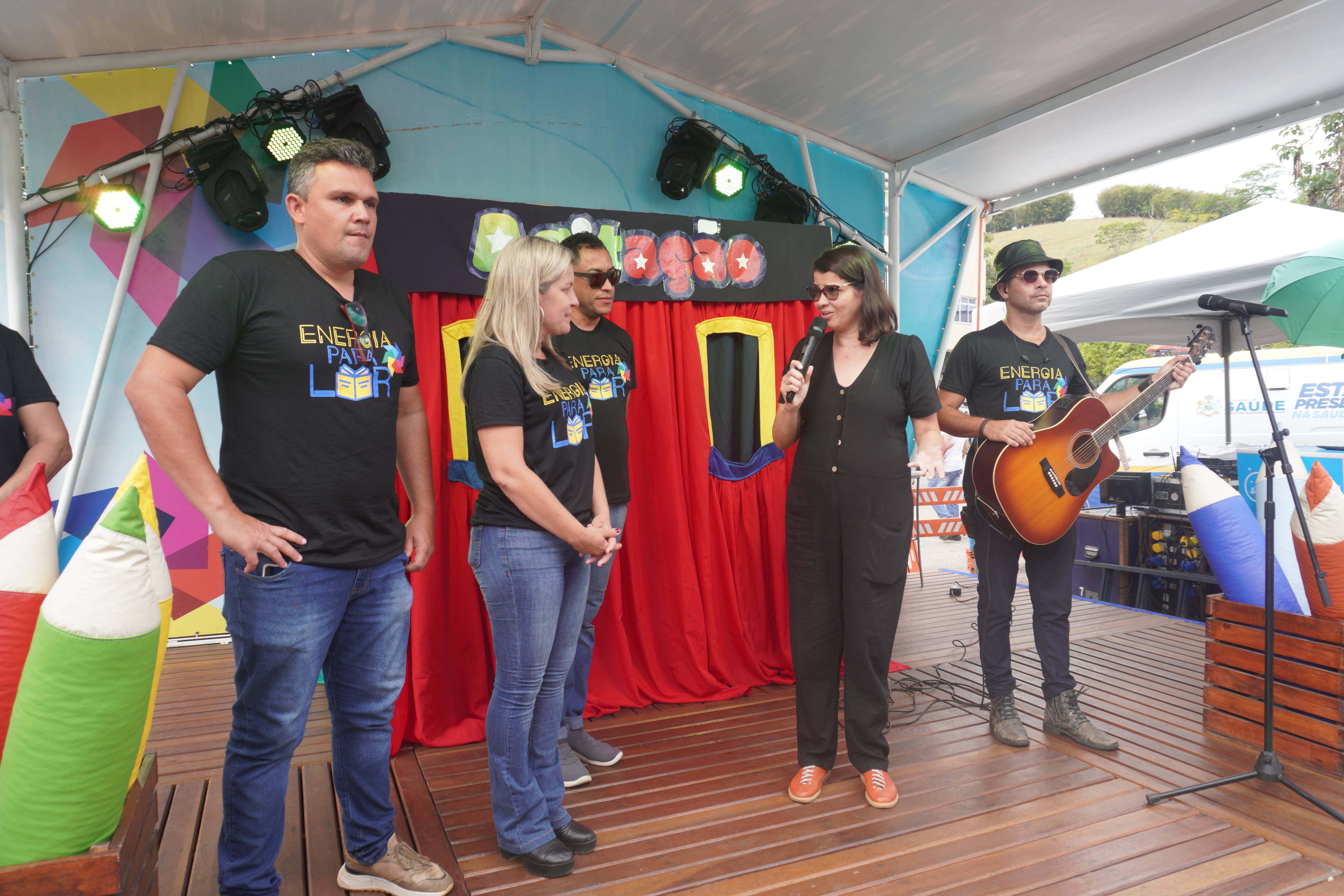 No palco, após ser recepcionada pela prefeita Michelle Bianchini e secretário de Governo João Vitor Pontes, Danielle Barros falou sobre o ‘Energia Para Ler’