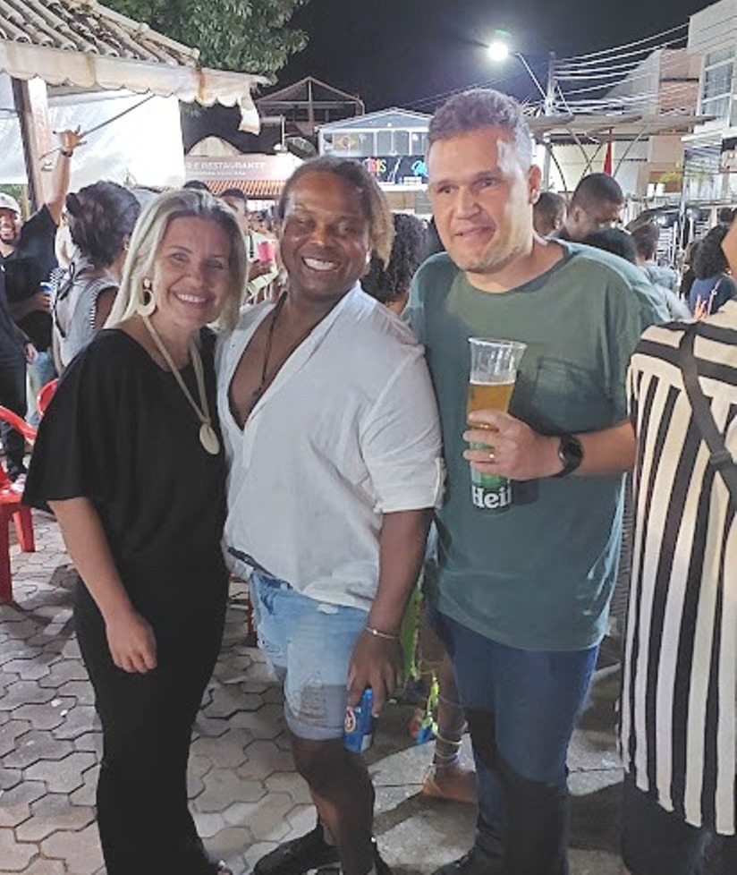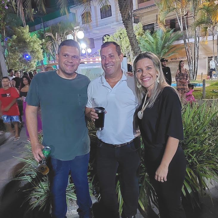 No dia de folga, Edwando Oliveira, diretor do Centro de Saúde, curte ao lado da prefeita Michelle e secretário João Vitor