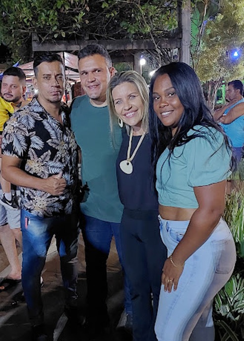 Mais um casal de amigos com a prefeita Michelle Bianchini e o secretário de Governo João Vitor Pontes no sábado à noite em Macuco