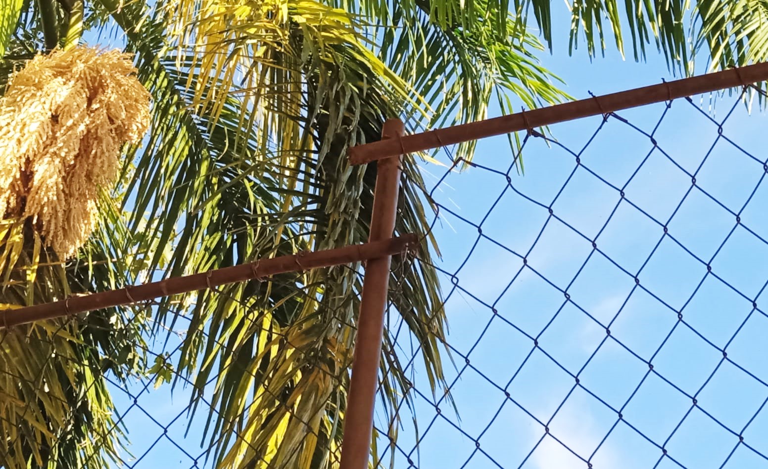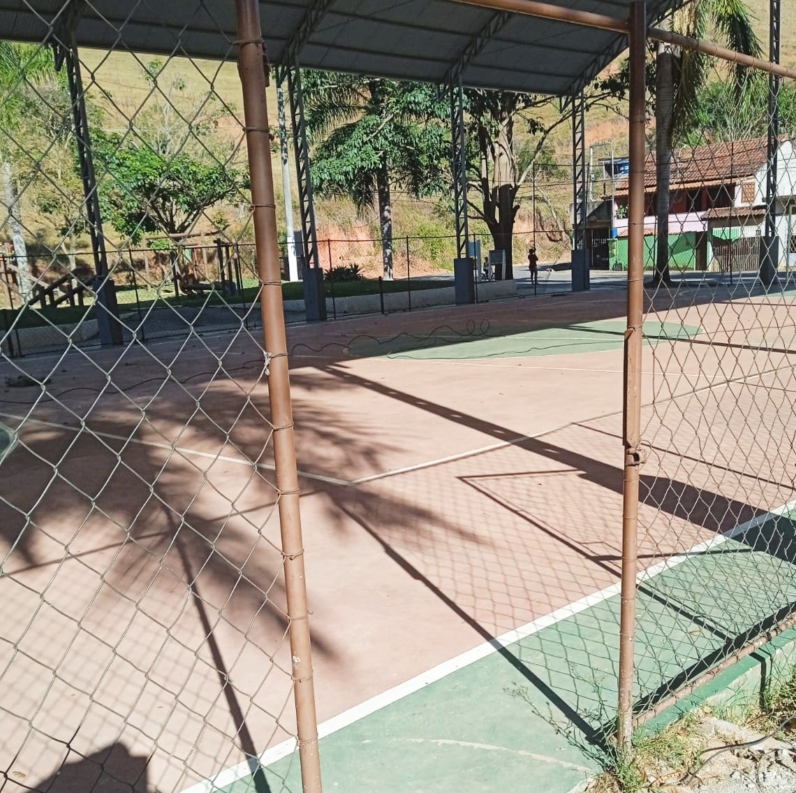 Reparos estão sendo feitos nas grades que protegem a quadra de esportes da Volta do Umbigo