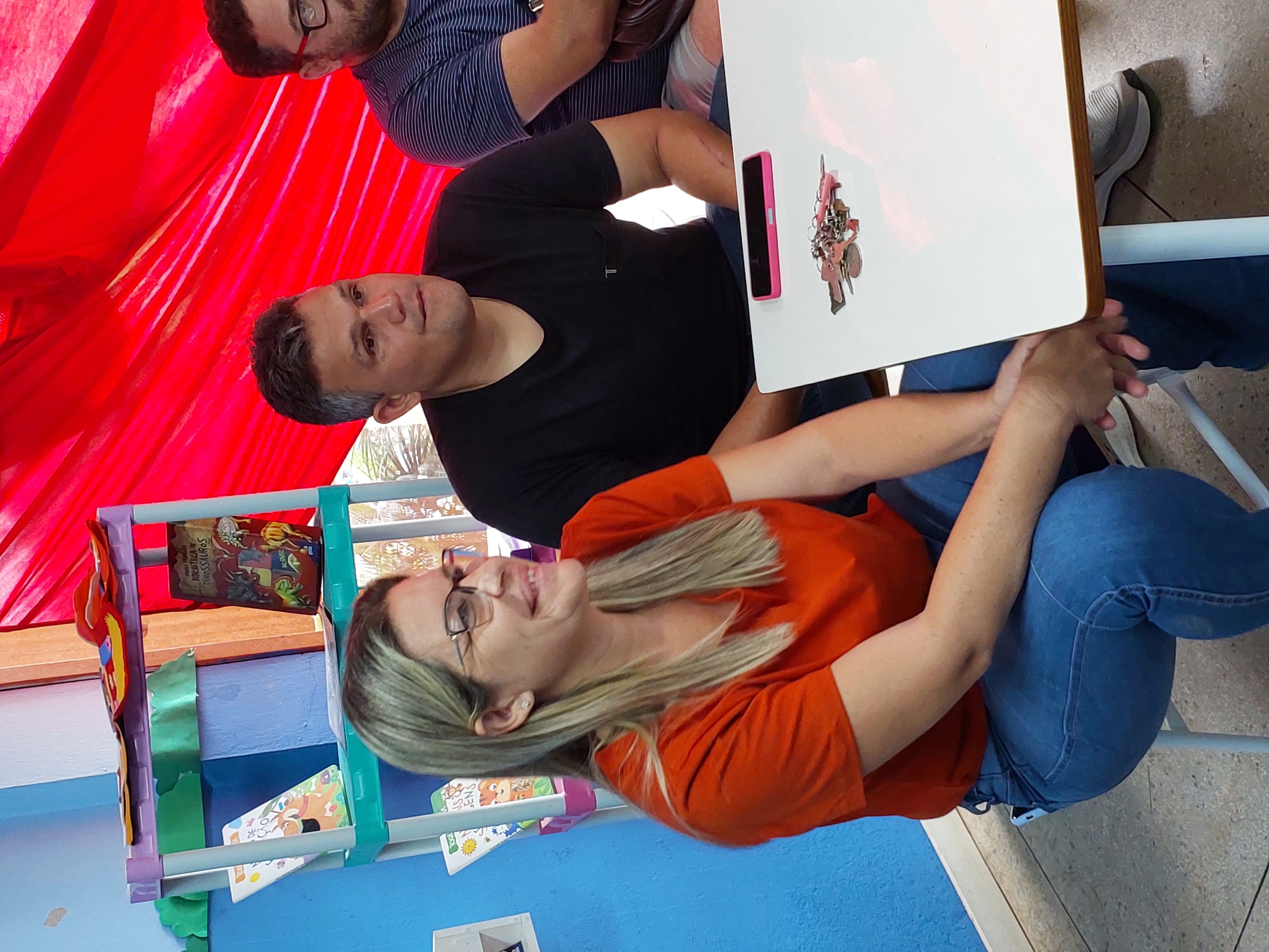 Momento comovente protagonizado pela articuladora municipal, professora Marcelle Vollu, e secretária Claudia Vogas durante o projeto