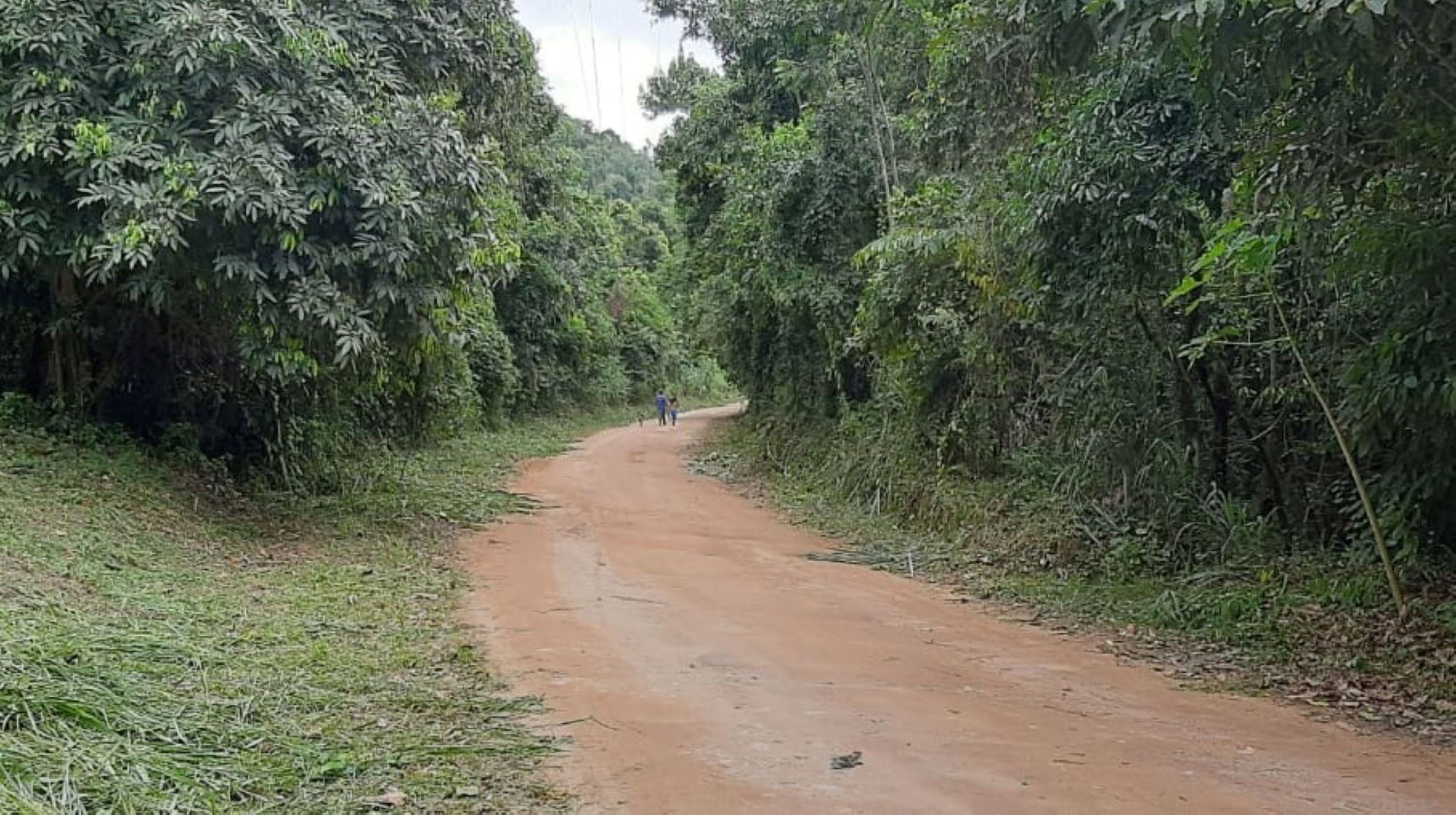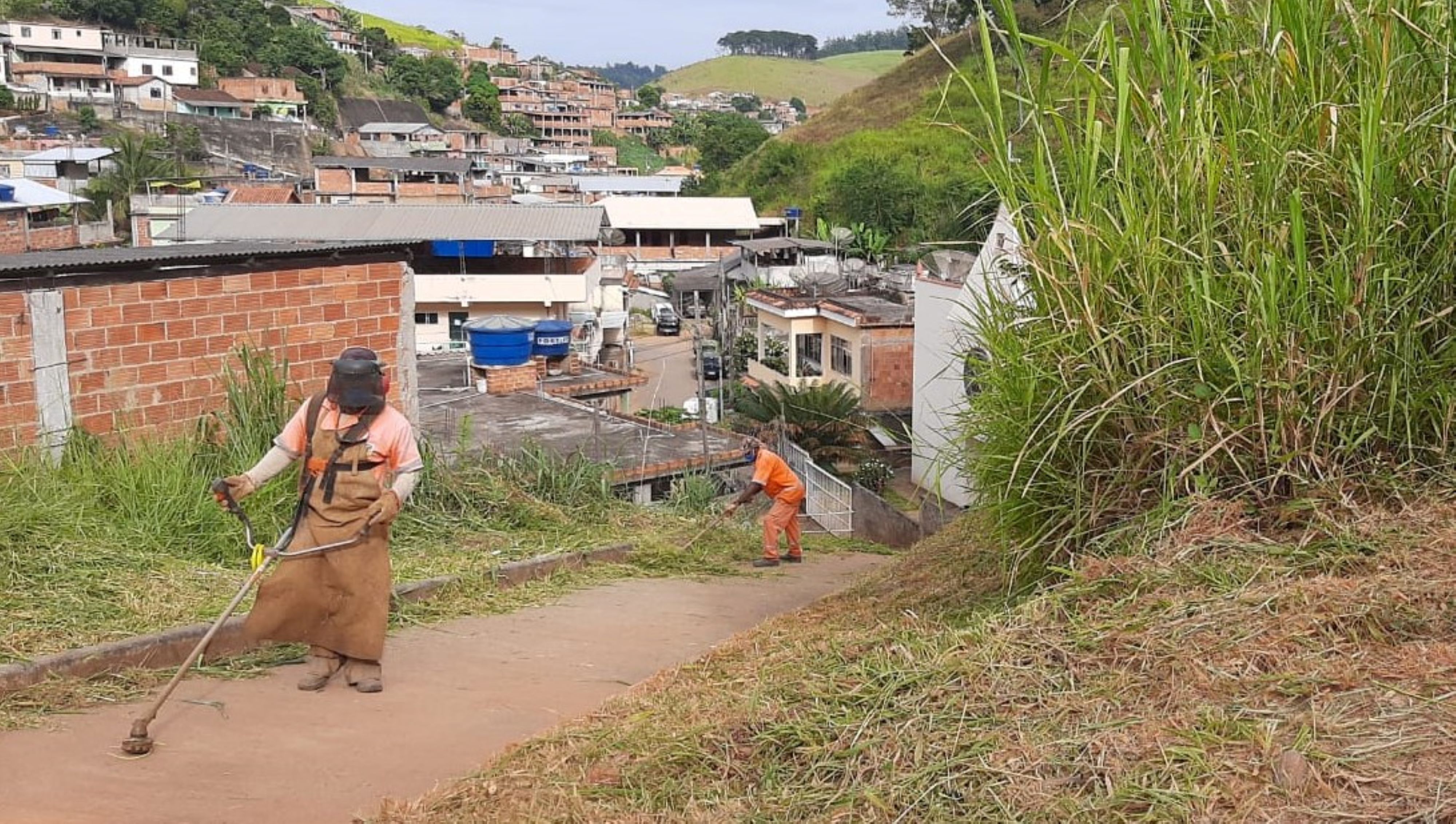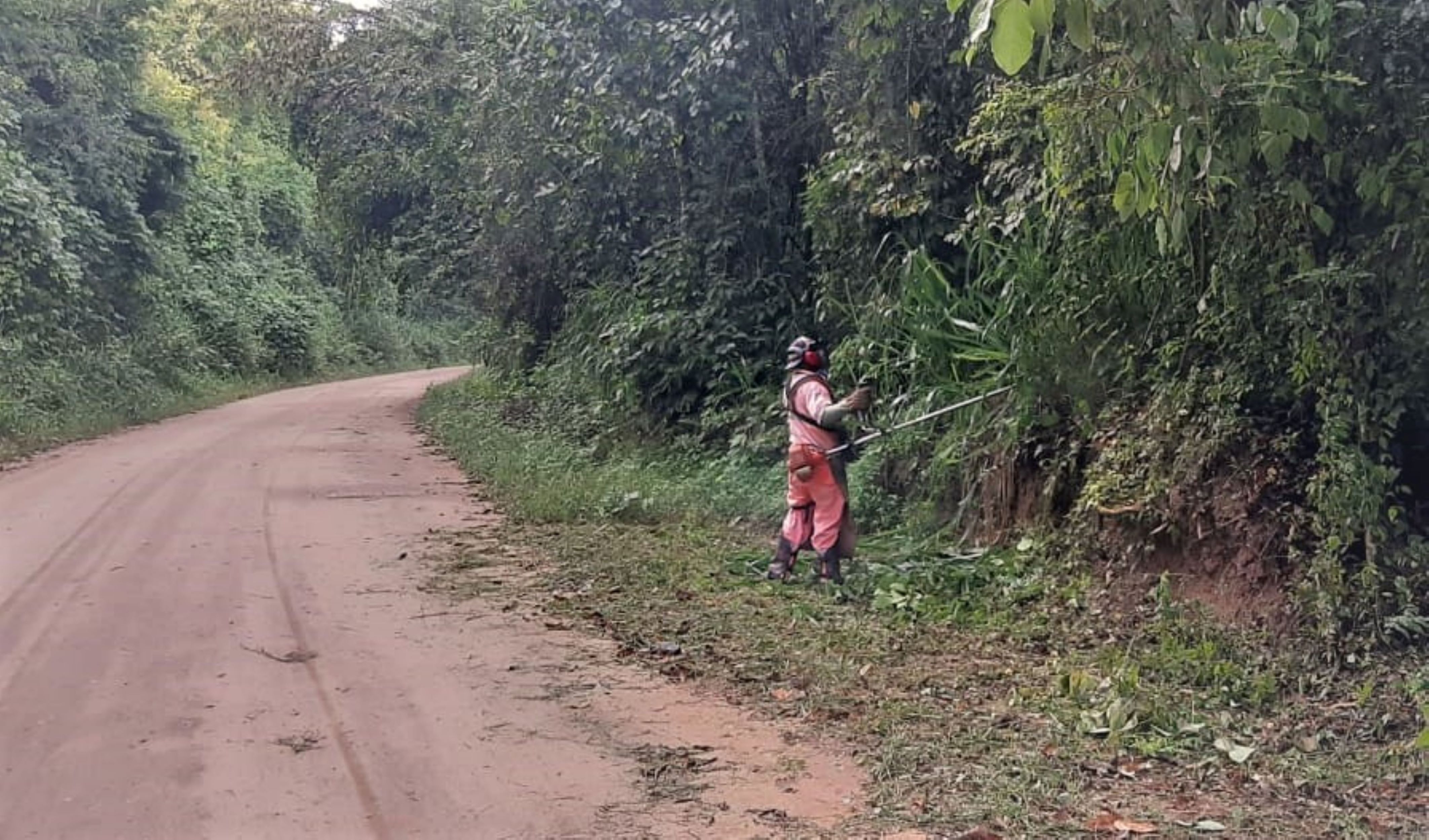 Profissional atuando com uma roçadeira na estrada da Volta da Ferradura