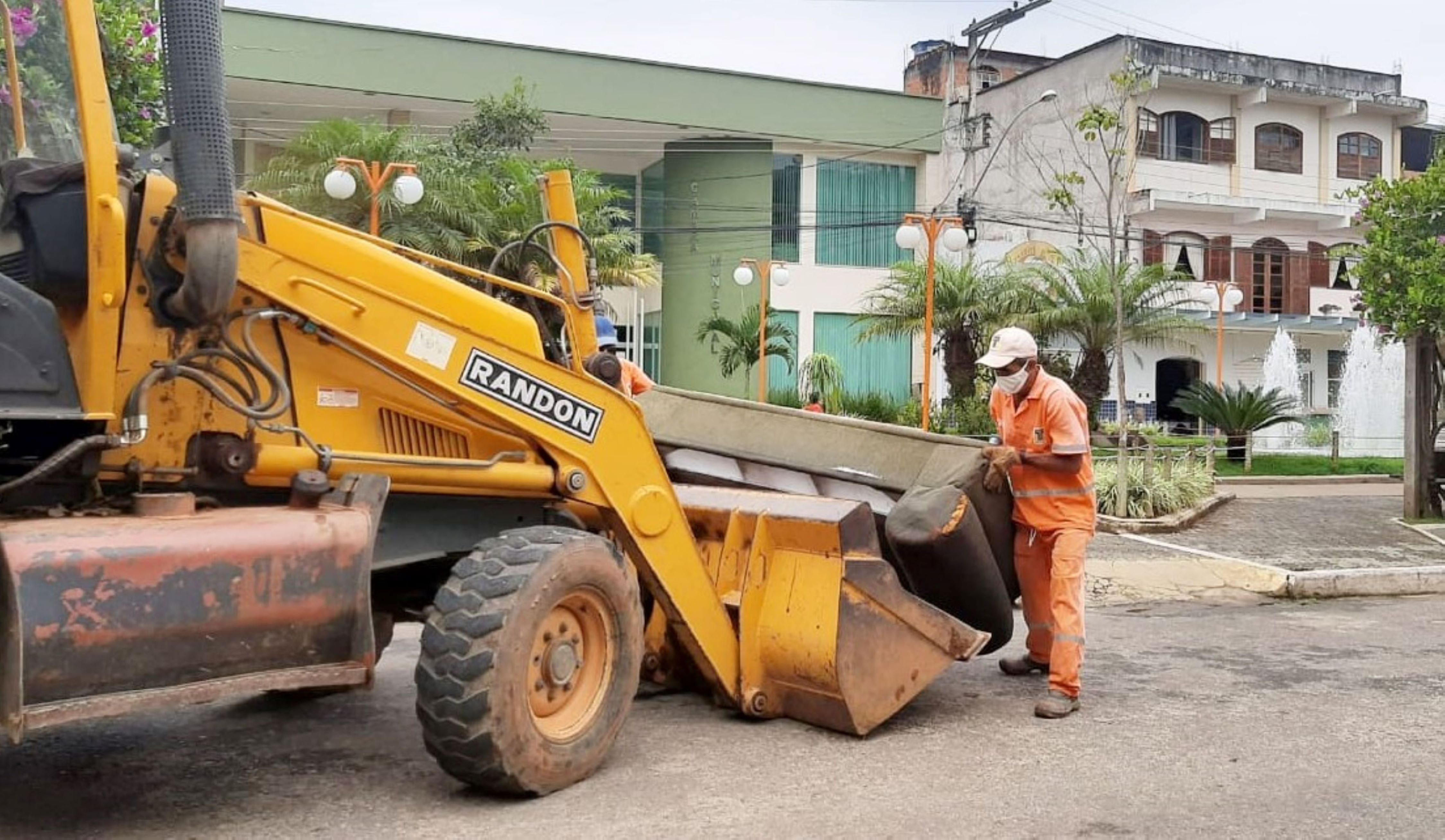 Retirada de entulhos próximo à sede do Poder Legislativo, centro da cidade