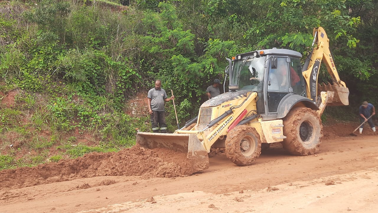 Os serviços contaram também com a atuação de uma máquina retroescavadeira para reforçar a retirada da lama e dos entulhos