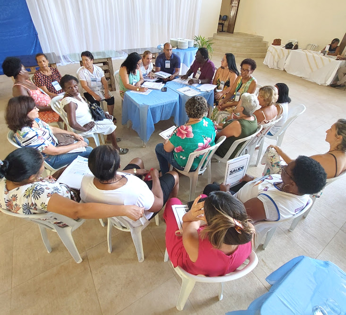 Profissionais de saúde e o presidente do Conselho Municipal Rivaldo Bada durante uma análise sobre a Conferência de Macuco