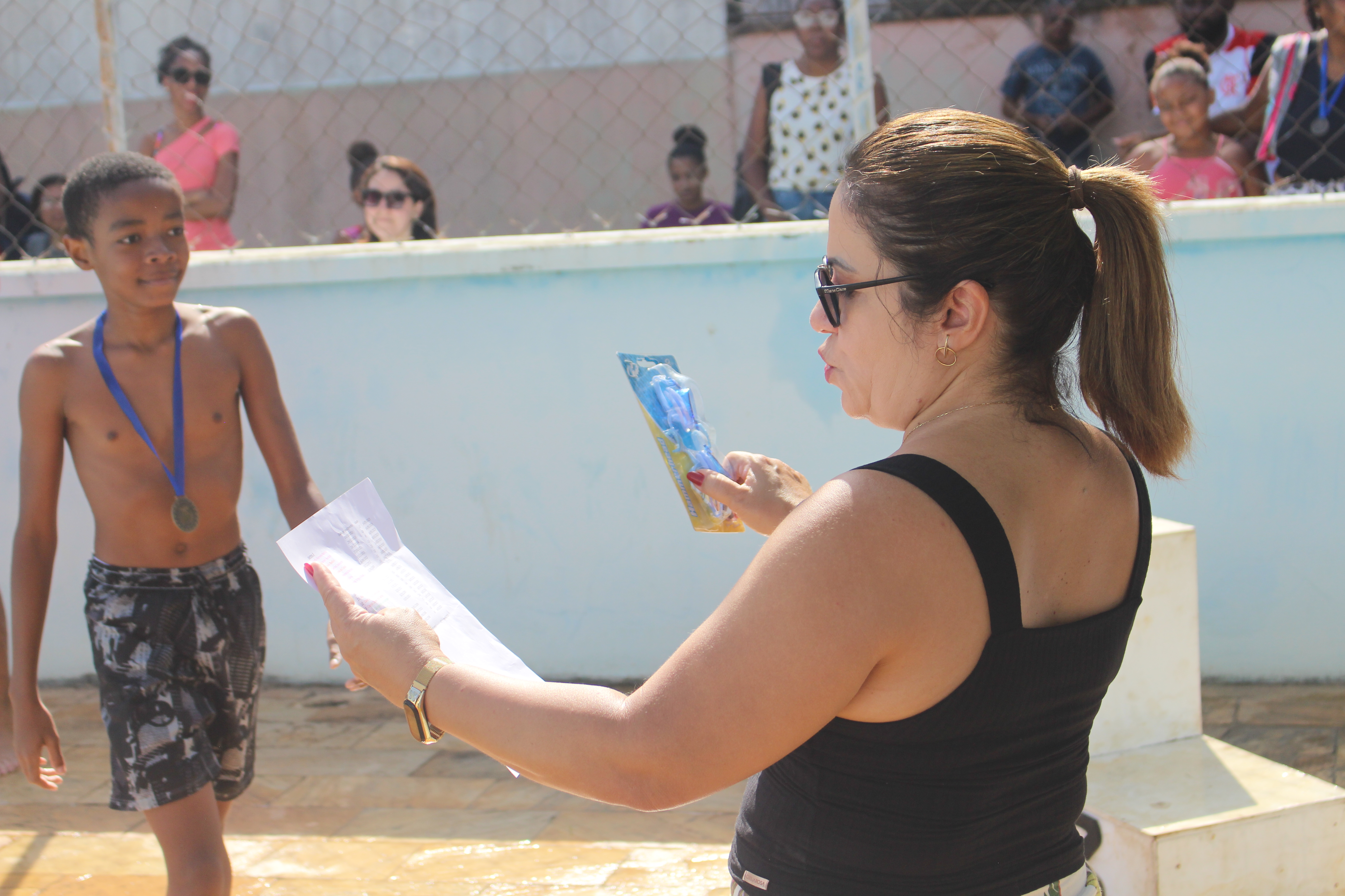 A própria Helen Ferreira entregou algumas das medalhas aos vencedores das concorridas provas de natação