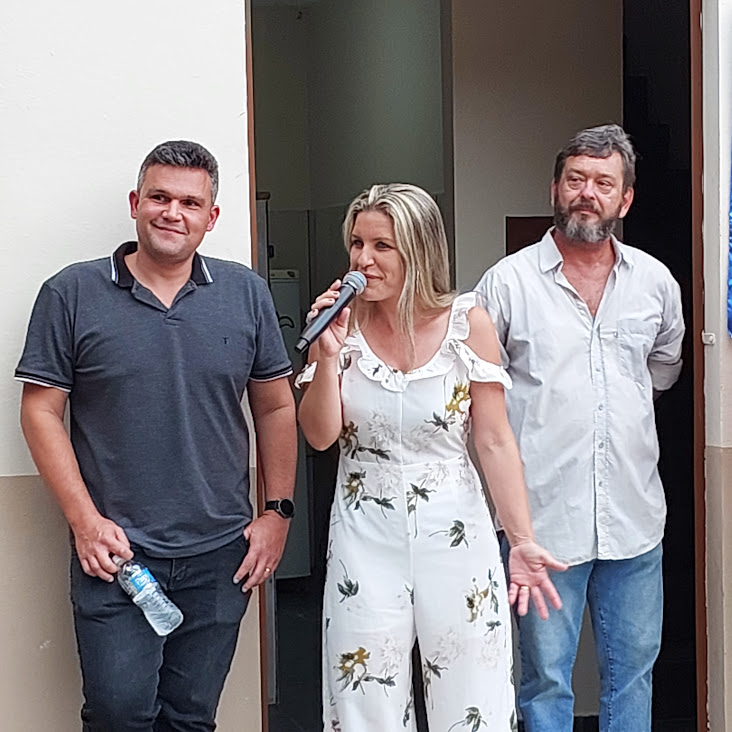 Quem também prestigiou o evento foi o ex-vereador Nilo Cruz, na imagem entre a prefeita e o secretário de Governo