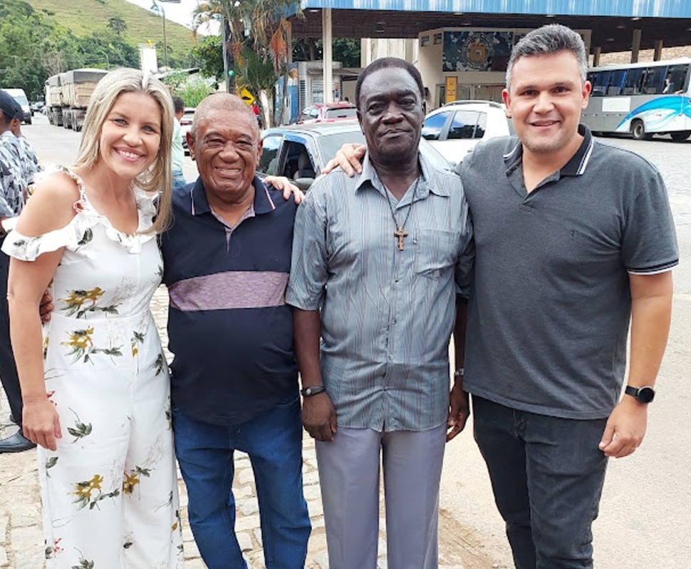 Ex-vereador Joãozinho e presidente do Conselho Municipal de Saúde Rivaldo Bada entre a prefeita Michelle Bianchini e o secretário de Governo João Vitor