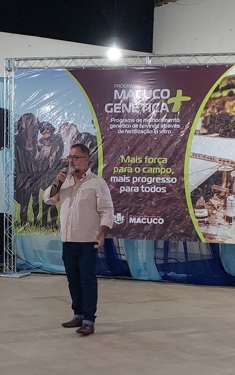 O dirigente da PESAGRO-RIO, Dudu Jardim, participa da apresentação do projeto que utiliza a Fertilização In Vitro (FIV) para revolucionar a produtividade leiteira em Macuco