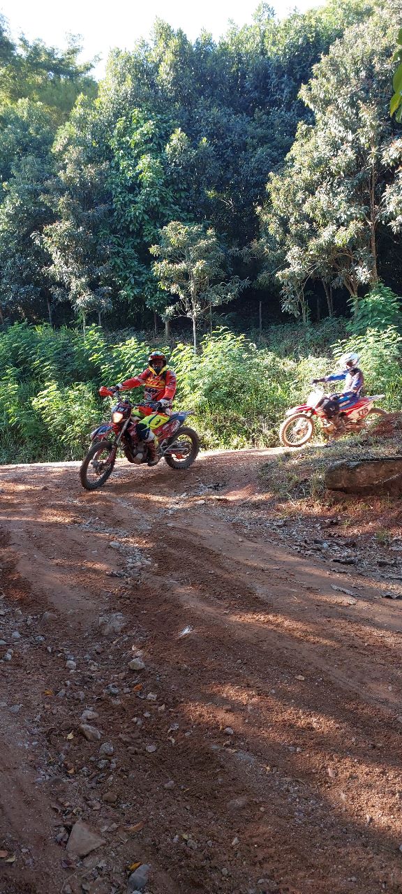 Mais dois competidores seguindo as estradas sinuosas que integram o percurso sempre desafiador da Trilha de São João Batista