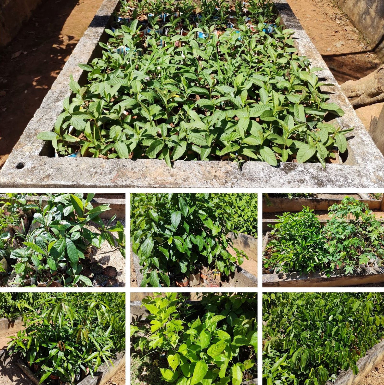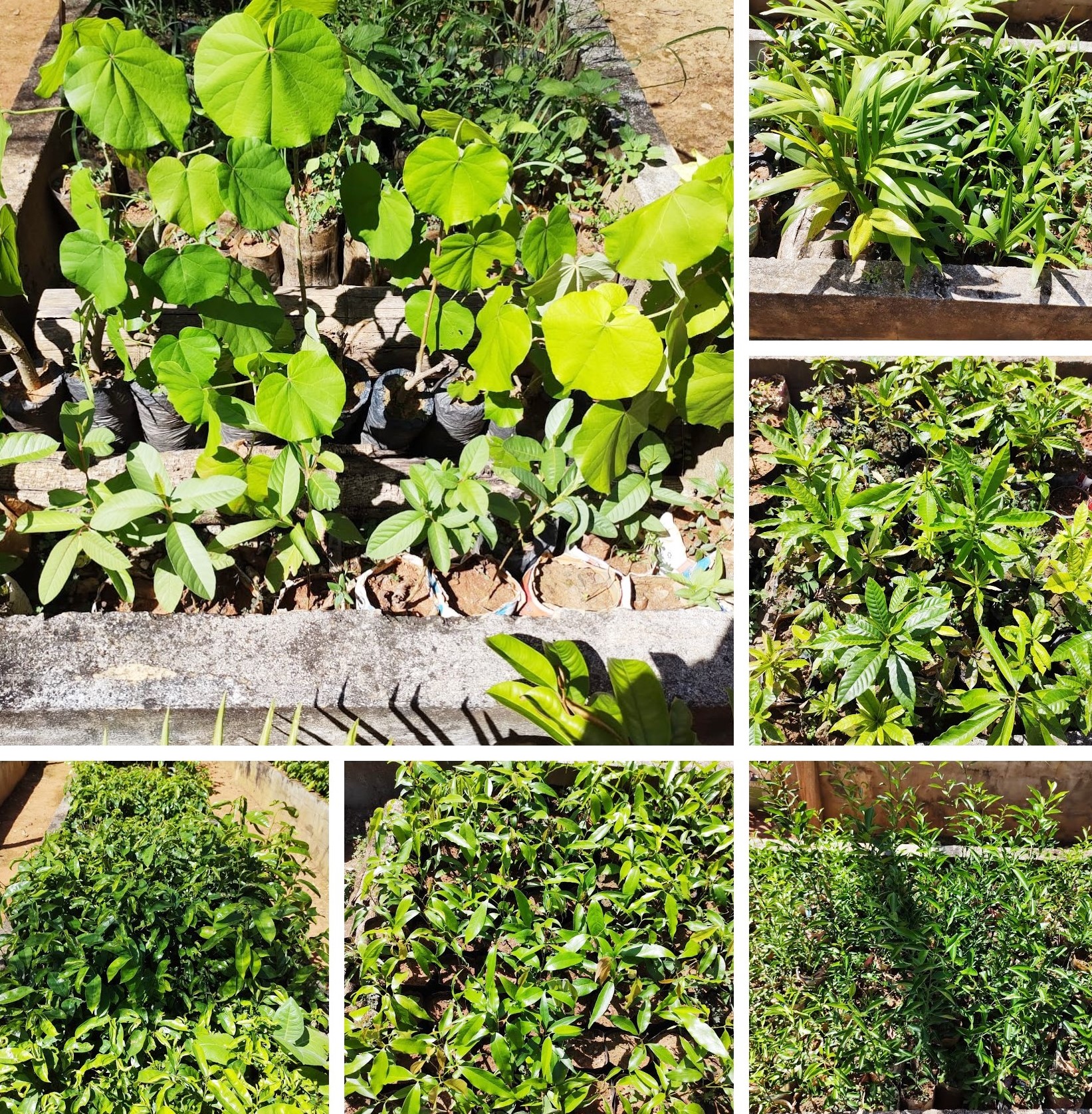 Outras mudas produzidas pelo horto são Araçá Roxo, Nespera, Abacate, Lima e Mamão, Manga, Amora, Jatobá