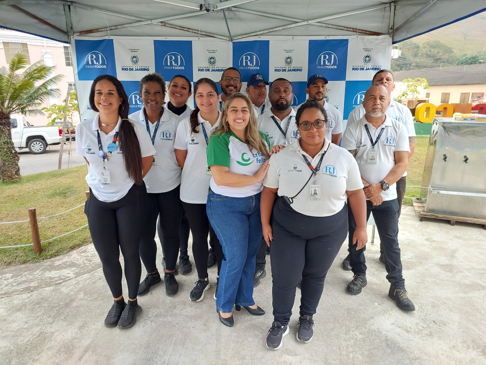 Secretária Tatiane Bormevet com a equipe do Governo do Estado que realizou a ação pelo ‘RJ Para Todos’