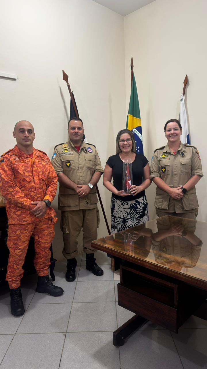 Militares do Corpo de Bombeiros presentearam a mandatária macuquense com uma pequena bandeira da instituição tão respeitada e admirada pela população