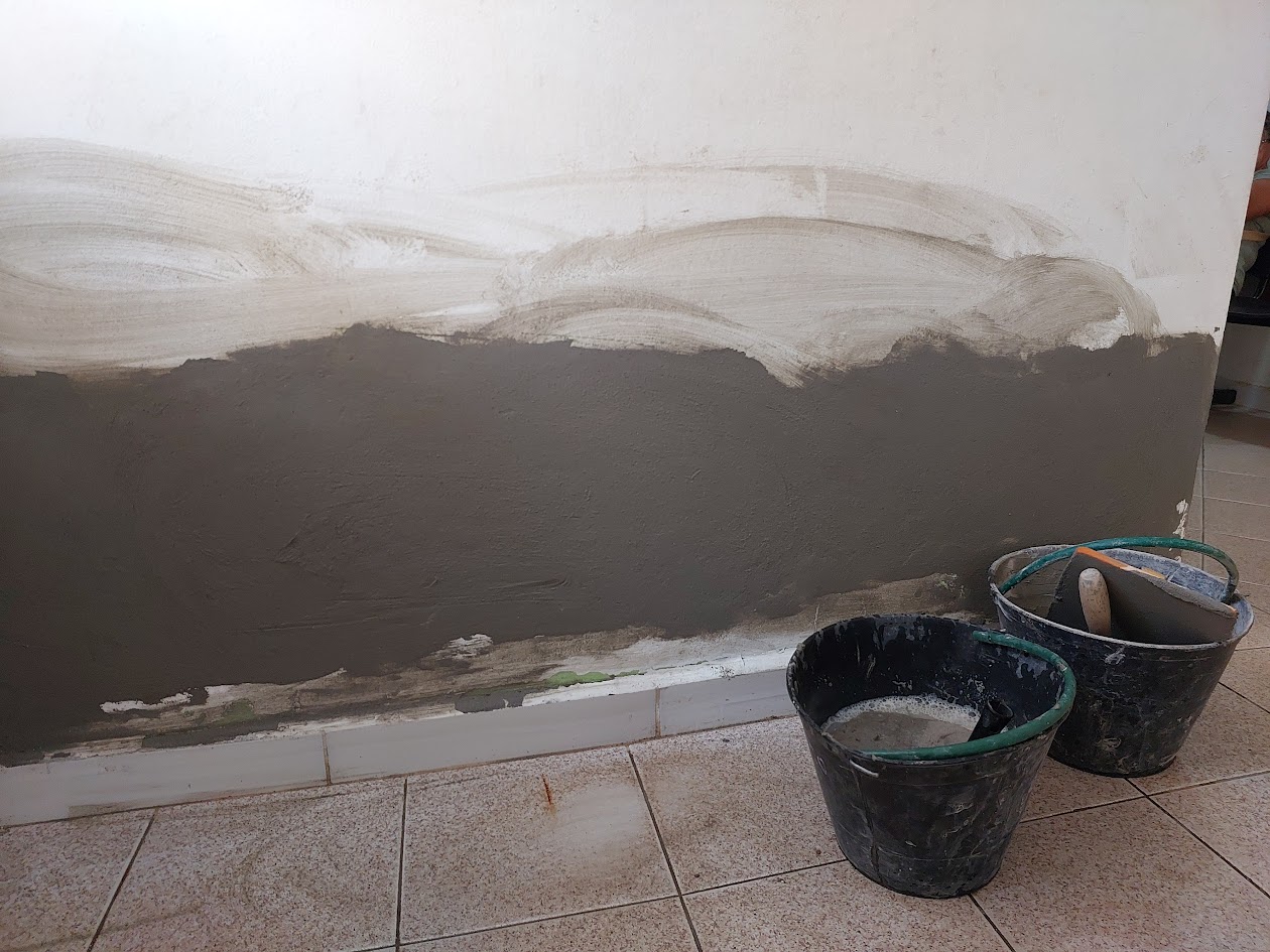 Após verificar as necessidades, os reparos vão sendo feitos pouco a pouco, para que depois a pintura possa ser sobreposta em cada parede reparada