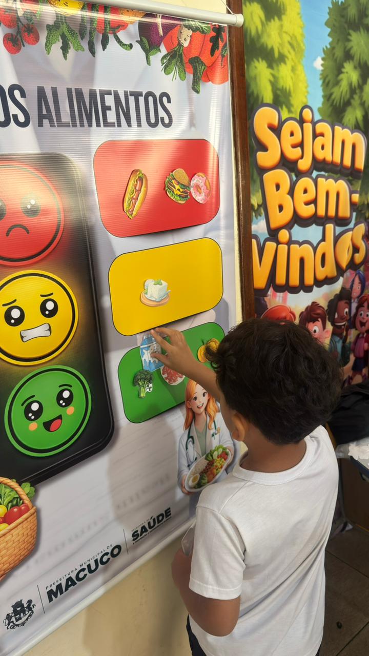 Dentro do Programa de Saúde na Escola, as crianças participaram da dinâmica do ‘Semáforo dos Alimentos’, aprendendo a identificar quais ajudam no desenvolvimento