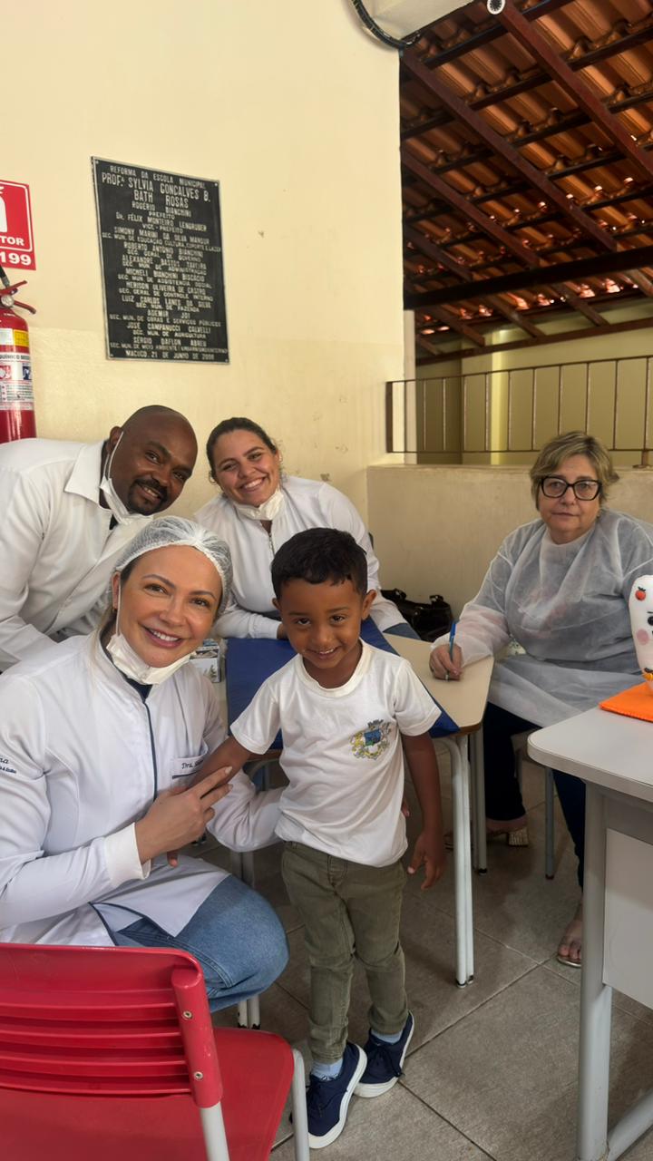 O Dia B da Saúde Bucal não é só teoria, é levar o consultório para dentro da escola de forma acolhedora com os profissionais realizando avaliações cuidadosas