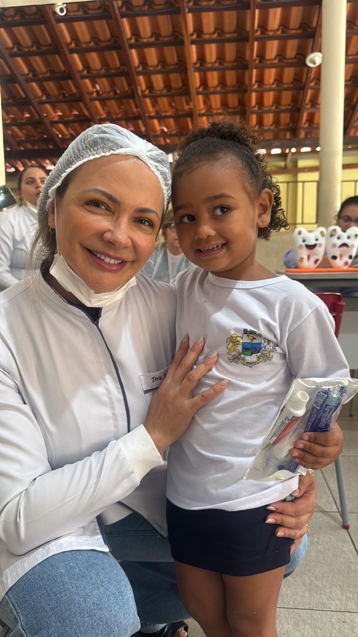 Dentista Shirle Falces proporcionou momentos de dedicação e cuidado com os pequeninos no Dia B da Saúde Bucal, num acolhimento peça-chave para a higiene bucal