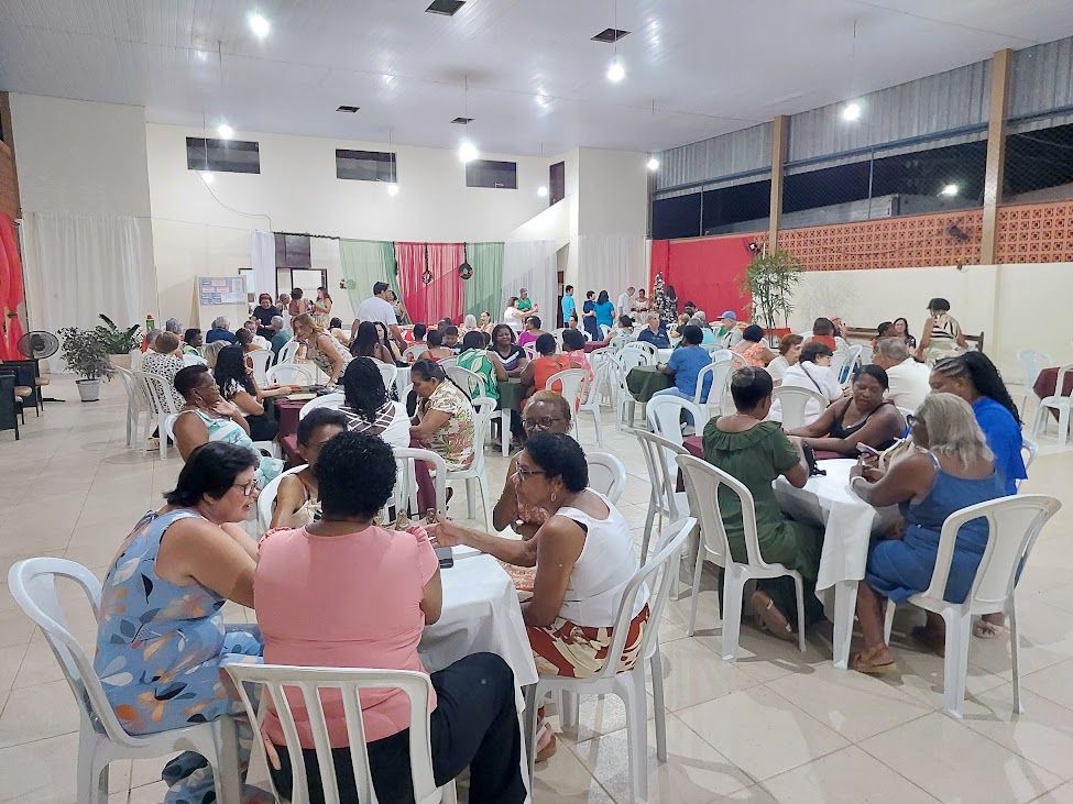 Mesas dispostas no salão e muito bate-papo também marcaram a noite de confraternização da terceira idade