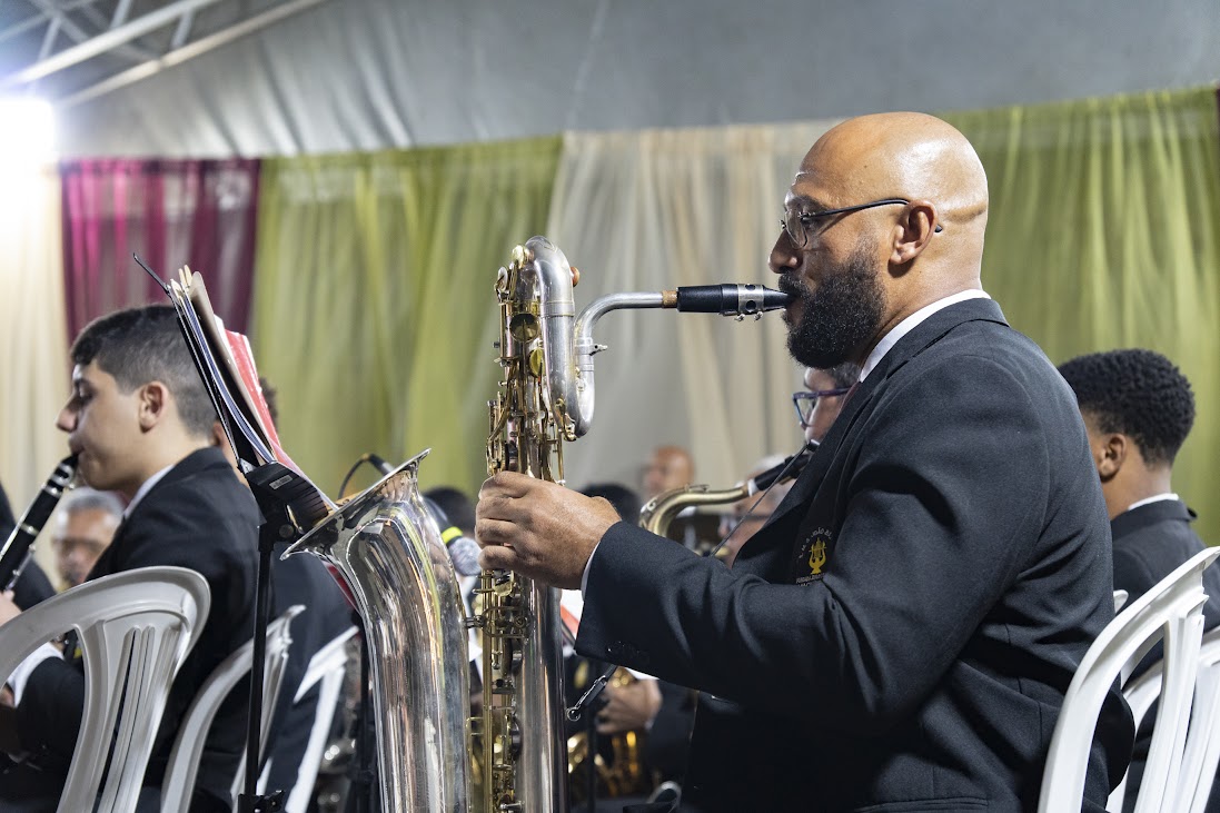 Na sequência, após um breve e significativo histórico da instituição – fundada em 1910 e reconhecida oficialmente em 2005 como Patrimônio Histórico, Cultural e Imaterial do município de Macuco e do Estado do Rio de Janeiro – teve início a apresentação principal. Sob a regência do sempre competente e inovador maestro João Poubel, a banda demonstrou excelência técnica, sensibilidade artística e profunda conexão com o público, fruto do empenho conjunto de sua diretoria, de músicos comprometidos com o que fazem, professores e voluntários devotados, que mantêm viva a música como expressão da identidade cultural local e da tradição fluminense.