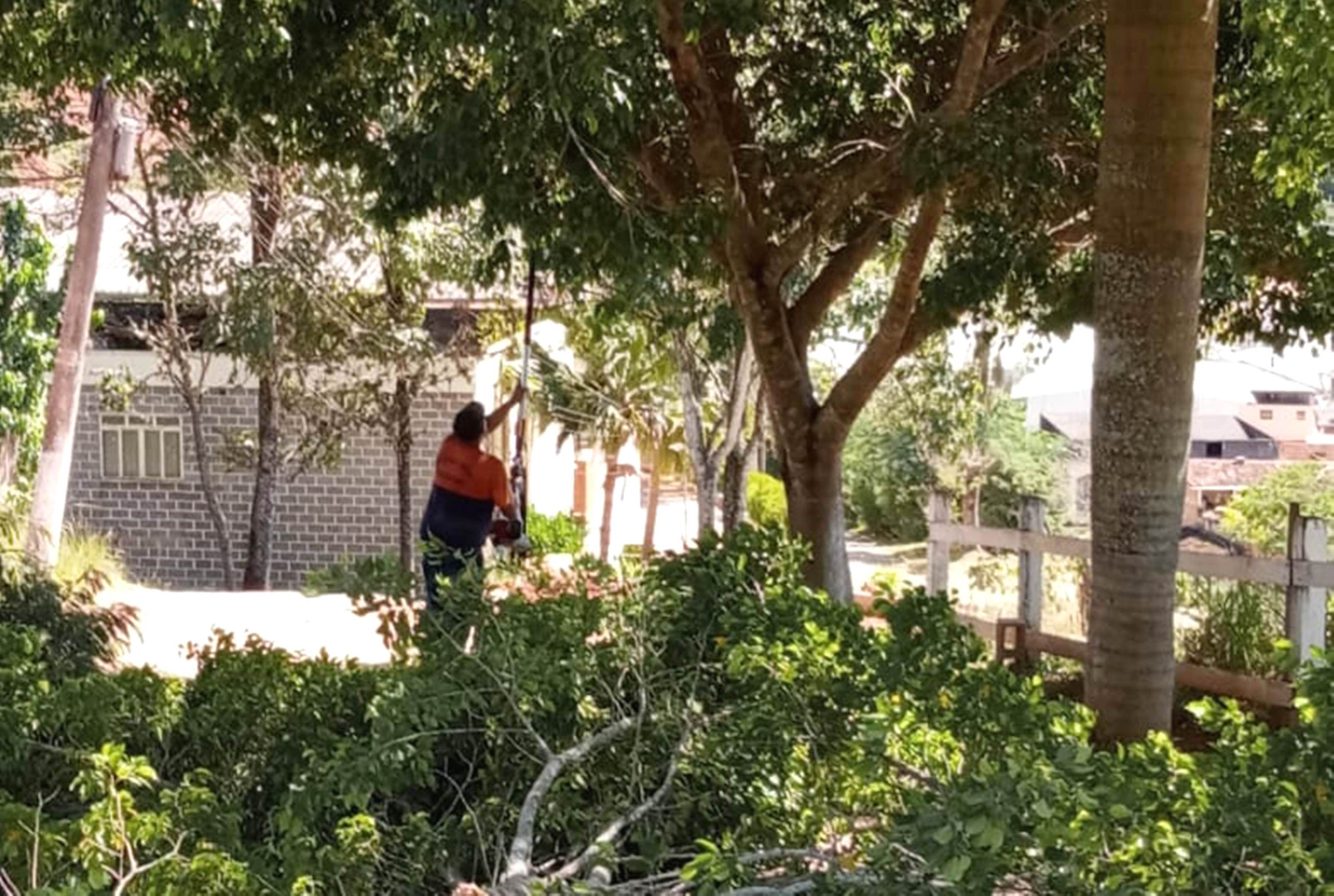 Equipe da Defesa Civil auxiliou com os serviços de poda de árvores na capela