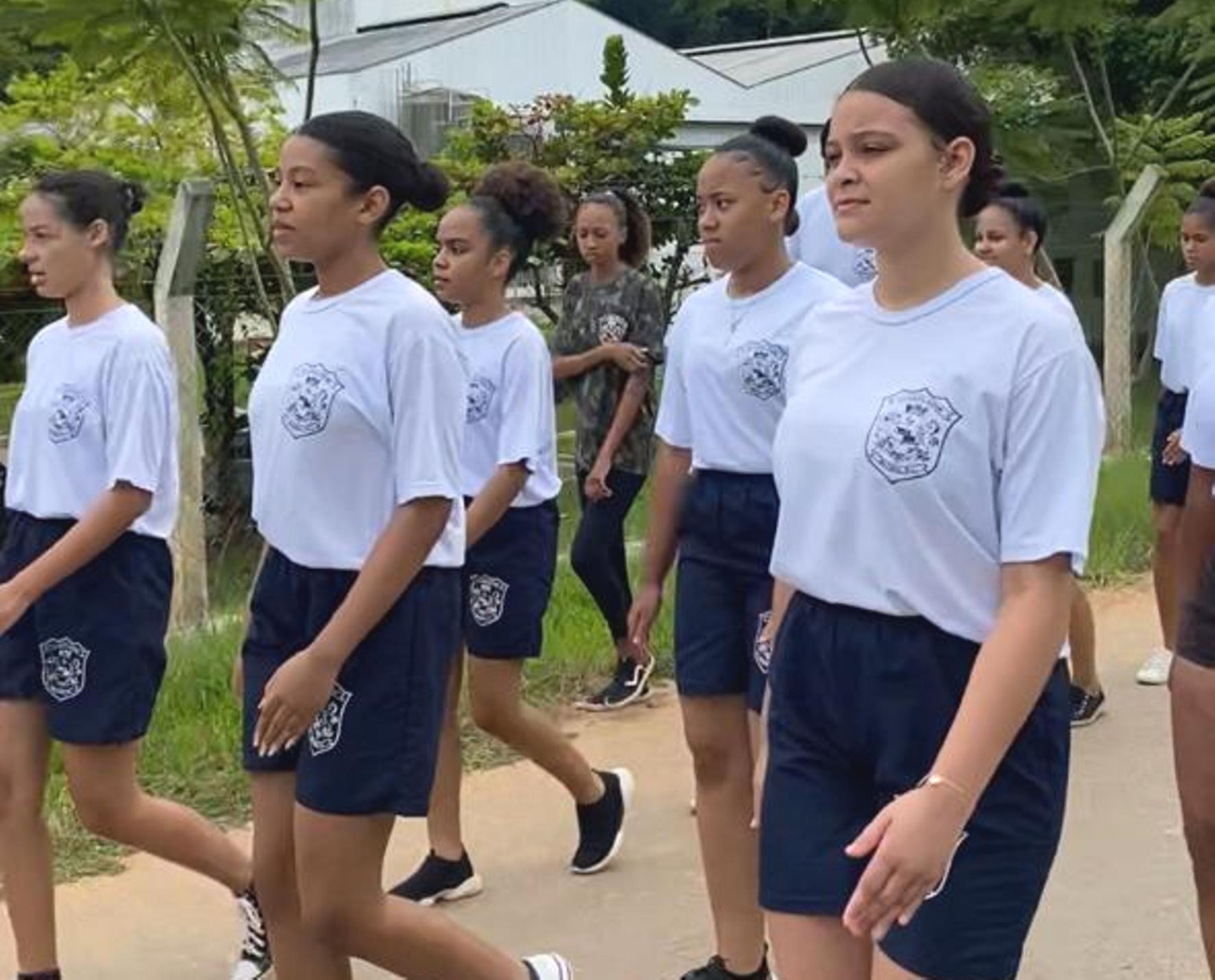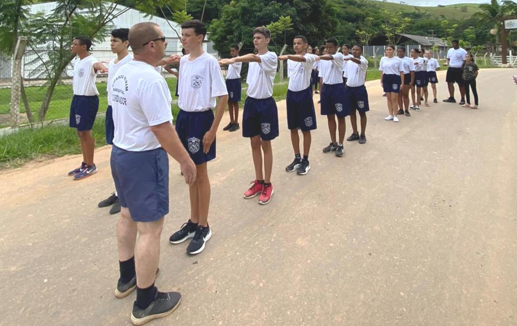 A manhã desta quarta-feira, dia 18 de janeiro, foi desenhada por mais dois momentos bastante marcantes desses ensinamentos ofertados à garotada. A primeira atividade foi um desfile realizado com os alunos, que saíram do Macuco Rural Park e percorreram as principais ruas do centro da cidade, exibindo disciplina, empolgação e desenvoltura juntamente com um dos instrutores, o servidor Raul Carapeba.