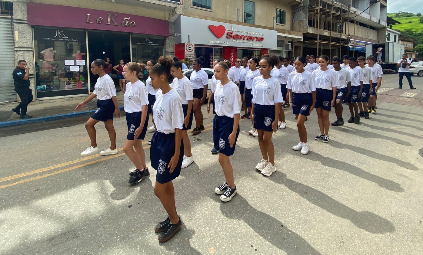 Adolescentes e jovens, meninas e meninos, desfilaram pelas ruas da cidade em direção à Prefeitura de Macuco