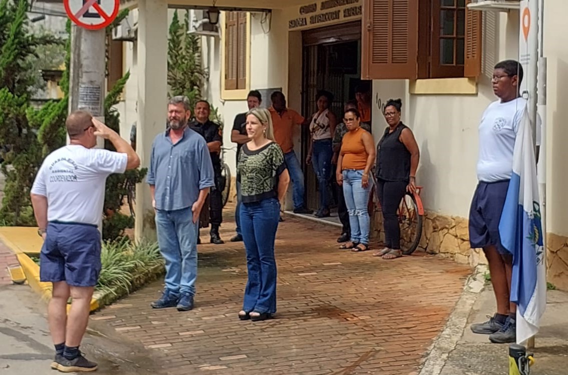 Após acompanharem nas semanas anteriores lições sobre Meio Ambiente, Primeiros Socorros e Defesa Civil, entre outros temas relevantes, nesta quarta-feira, dia 25 de janeiro, depois de um desfile marchando pelas ruas do centro da cidade, os jovens se dirigiram à entrada da sede da Prefeitura de Macuco, onde todos em forma prestaram continência ao pavilhão nacional e acompanharam respeitosamente o seu hasteamento.