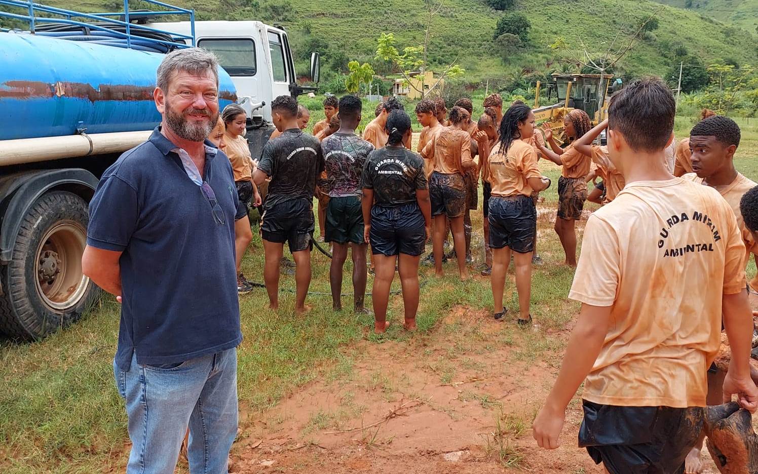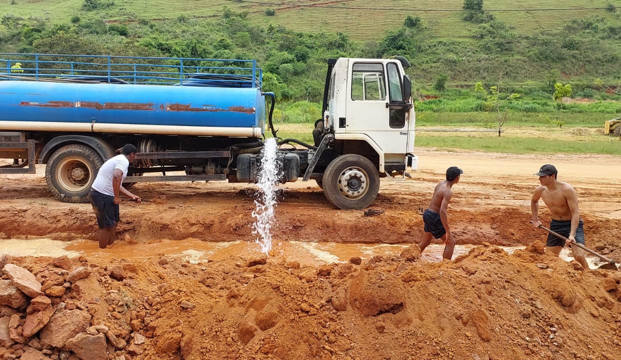 Caminhão pipa com água tratada e limpa auxilia a equipe na hora de encher o tanque para a atividades dos jovens