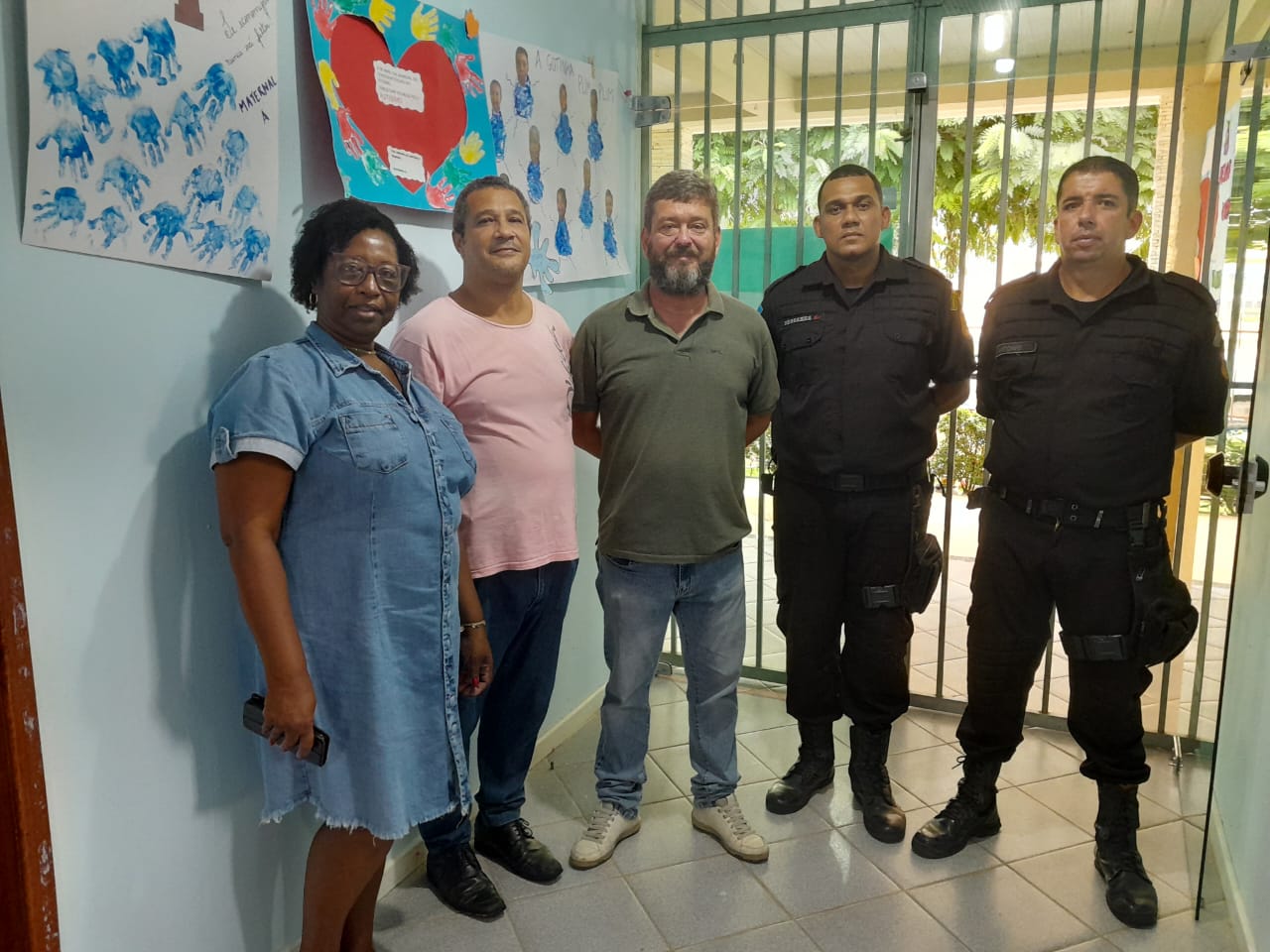 O primeiro bate-papo informal e abrangente se deu com estudantes, professores, diretoras e pessoal de apoio dos educandários estaduais Colégio Estadual José Carlos Boaretto e Colégio Estadual Rodolpho Albino; da escola particular Balão Mágico; e escolas municipais David Coelho dos Santos e Sylvia Bittencourt Bath Rosas. Também no CIEP Municipalizado Honório Peçanha, a Guarda Civil Municipal marca presença em todos os horários, incluindo entrada e saída dos turnos.
