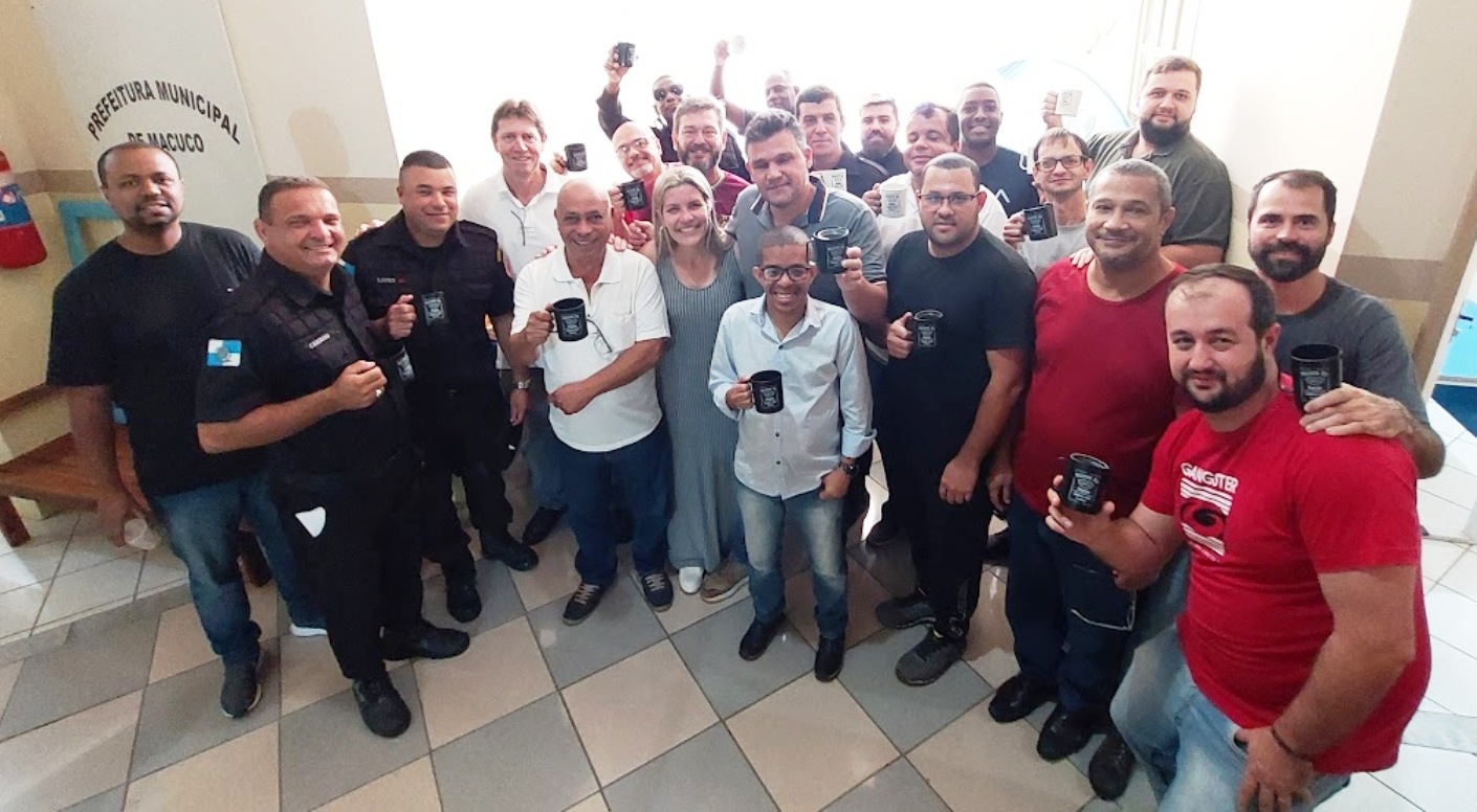 Com suas canecas personalizadas para marcar a data comemorativa, os papais da Gestão Macuquense se confraternizaram na manhã da sexta-feira, dia 11