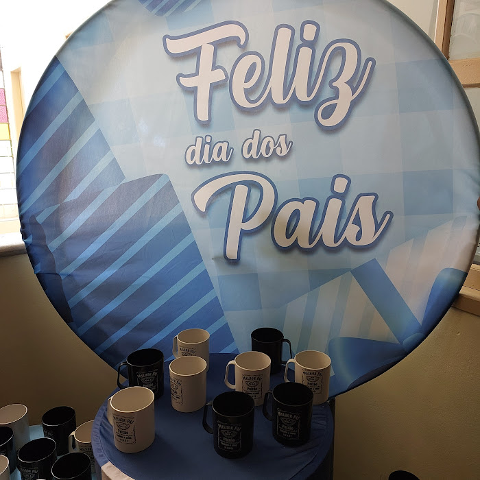 Até um painel especial foi montado para adornar as homenagens direcionadas aos atuais e futuros papais da Administração Municipal