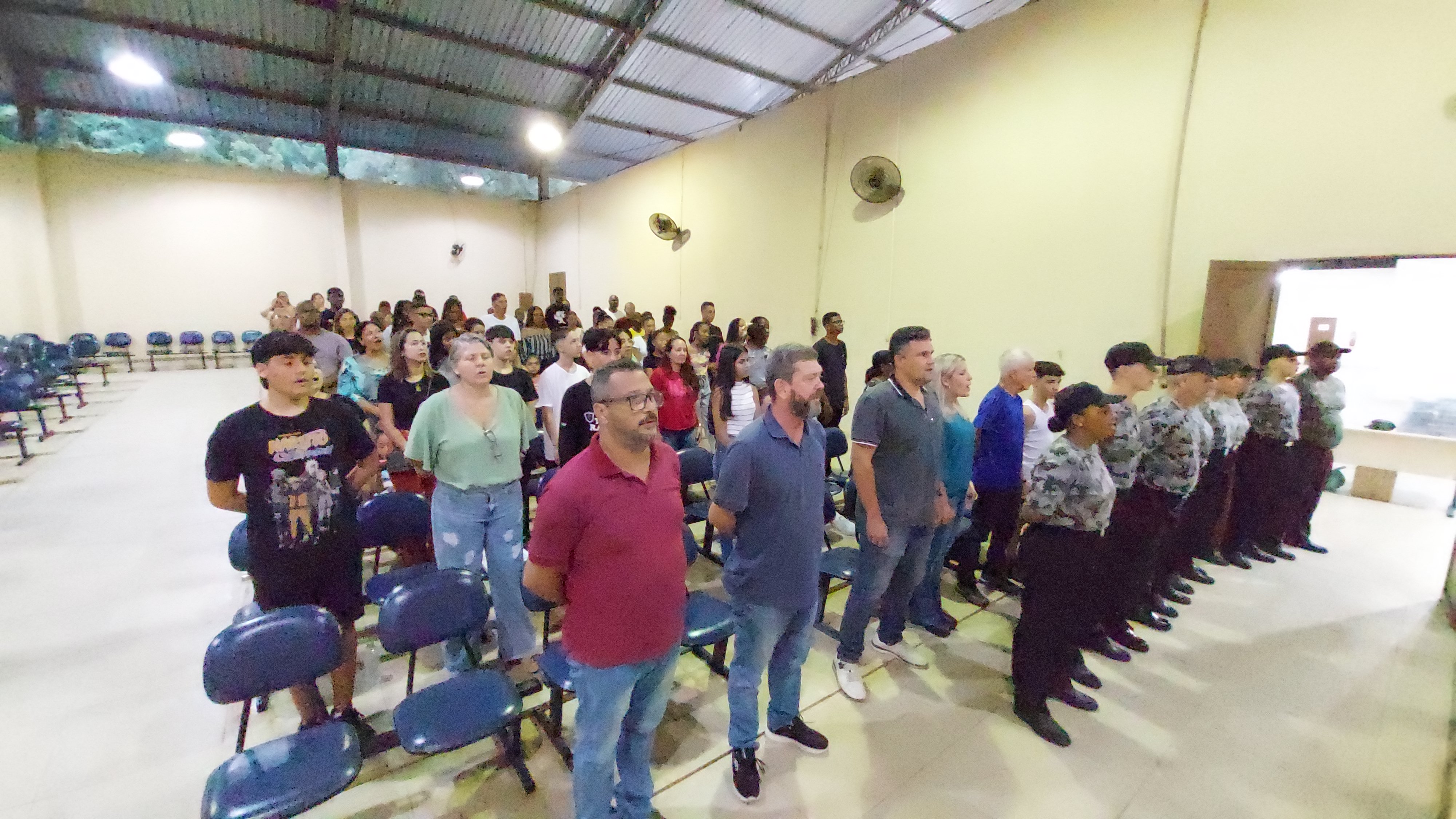 No início da cerimônia, o grande público presente entoou os hinos Nacional e Municipal junto com os estudantes iniciantes