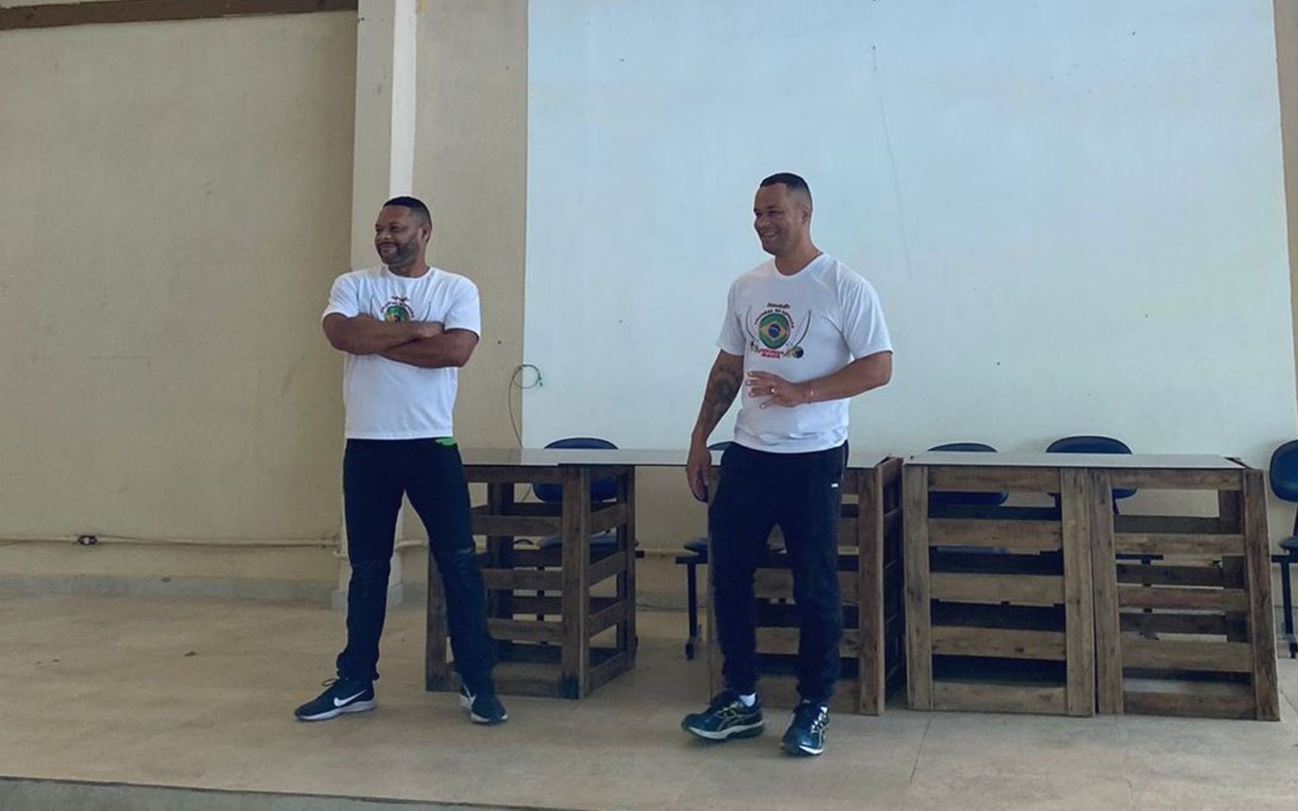 Didáticos e bem explicativos, os contramestres de Capoeira Dinho e Ricardo mostraram as técnicas na teoria e na prática