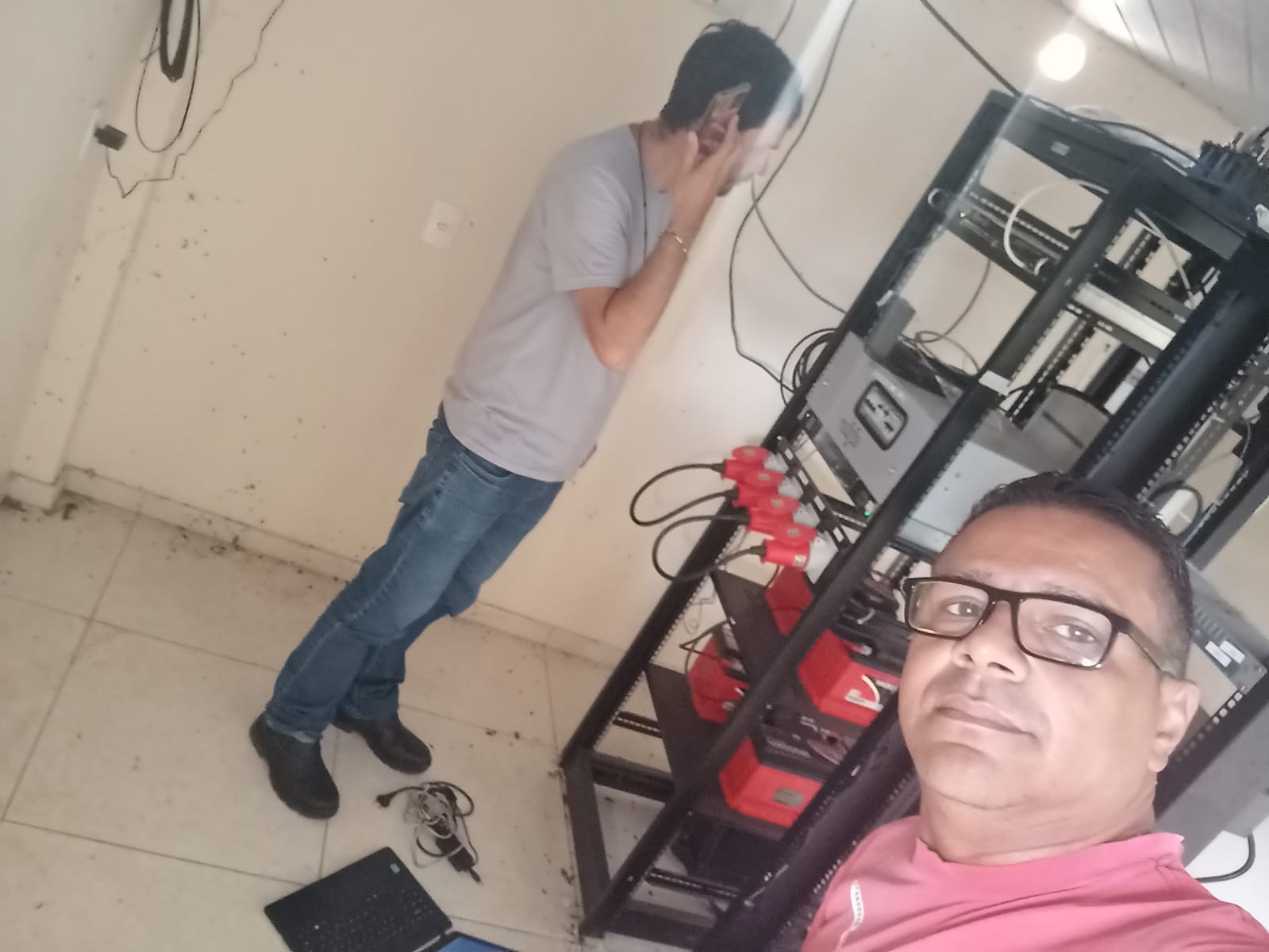 O técnico macuquense Oswaldo Kely fez uma selfie do momento em que o profissional da Inter TV realizava o procedimento