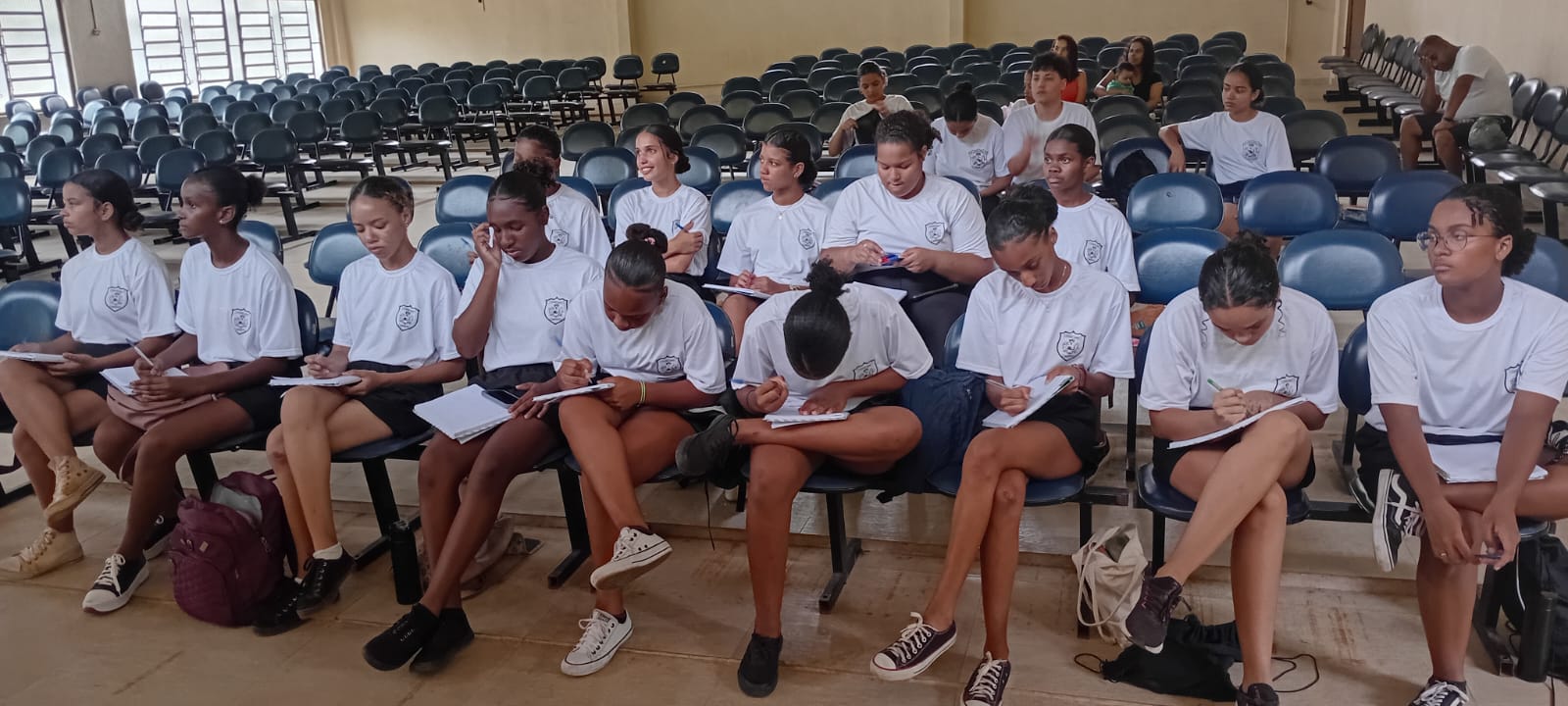 Com atenção e interesse, as meninas que participam do Curso de Formação anotaram cada detalhe importante tratado no encontro