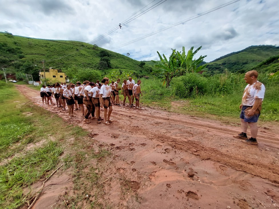 Já com as roupas parcialmente sujas de lama, moças e rapazes tiveram uma prévia do que ainda estava por vir no encerramento das atividades