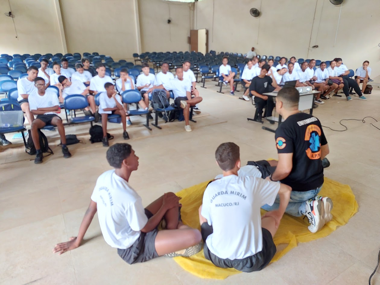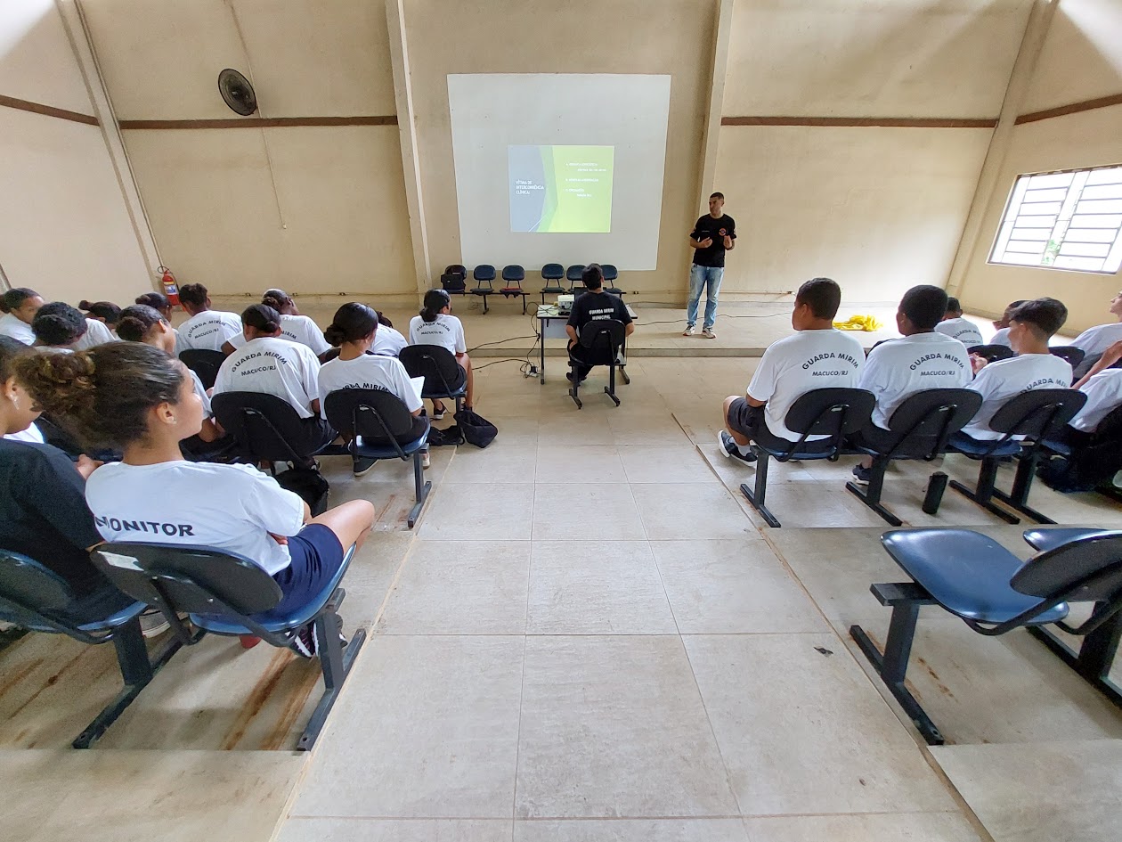 A Secretaria de Segurança Pública de Macuco segue investindo na formação dos futuros agentes da Guarda Mirim Municipal, sob a coordenação do Capitão Jocélio Bezerra. Na última quinta-feira, dia 30 de janeiro, no Auditório Francisco Dornelles, no Rural Park, 30 jovens (15 meninas e 15 meninos) participaram de uma palestra sobre ‘Primeiros Socorros’, ministrada pelo experimentado enfermeiro Rondinelli Baraldi, que compartilhou seu vasto conhecimento na área de saúde emergencial.