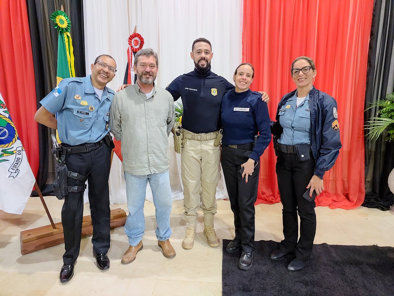 Na festa, encontro feliz entre o Sargento Cezário, o secretário Capitão Bezerra, o Policial Rodoviário Luiz Eduardo Gualberto e as sargentos Verônica e Carolina