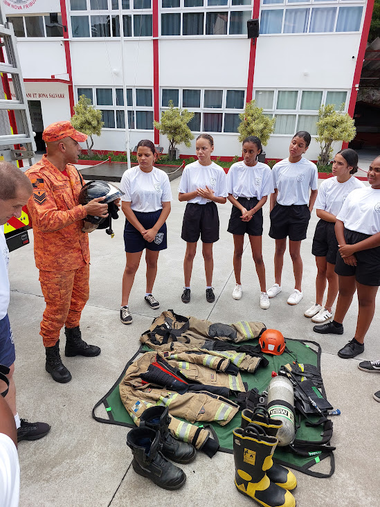 Alunos da Guarda Mirim frequentemente são convidados a receber novos conhecimentos dos bombeiros, como ocorreu recentemente em Nova Friburgo