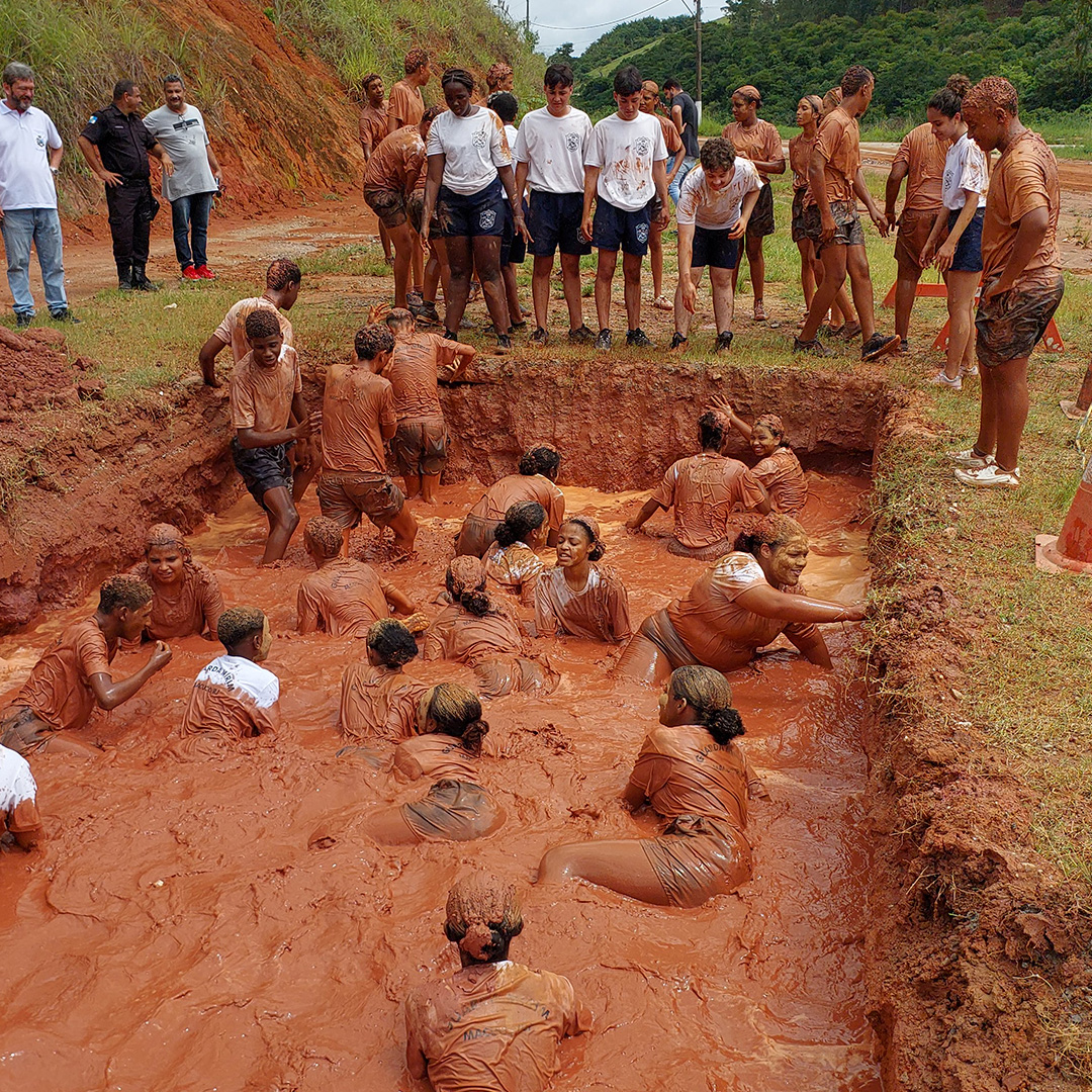 Diversão e companheirismo também são parte integrante do processo de aprendizado, como confirma o tradicional ‘banho de lama’ que ocorre ao final do curso