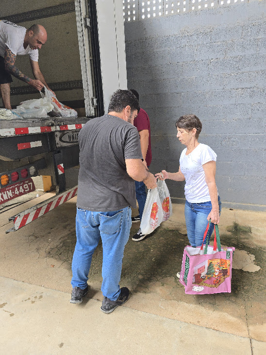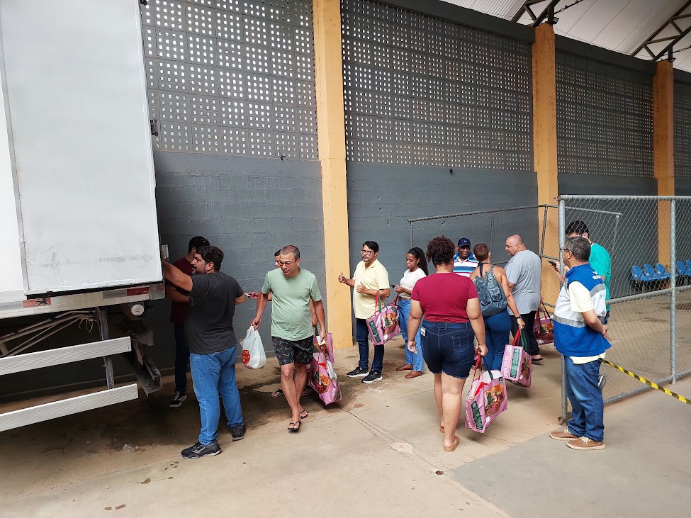 Mais um grupo enfrentando a fila para garantir a retirada dos congelados que integram a Cesta Natalina 2025