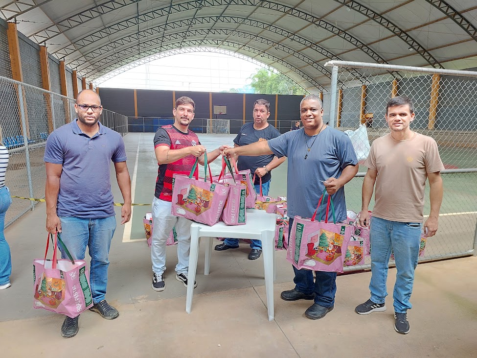 Aos poucos, servidores lotados em todas as secretarias e departamentos foram retirando suas Cestas Natalinas no ginásio do Rural P