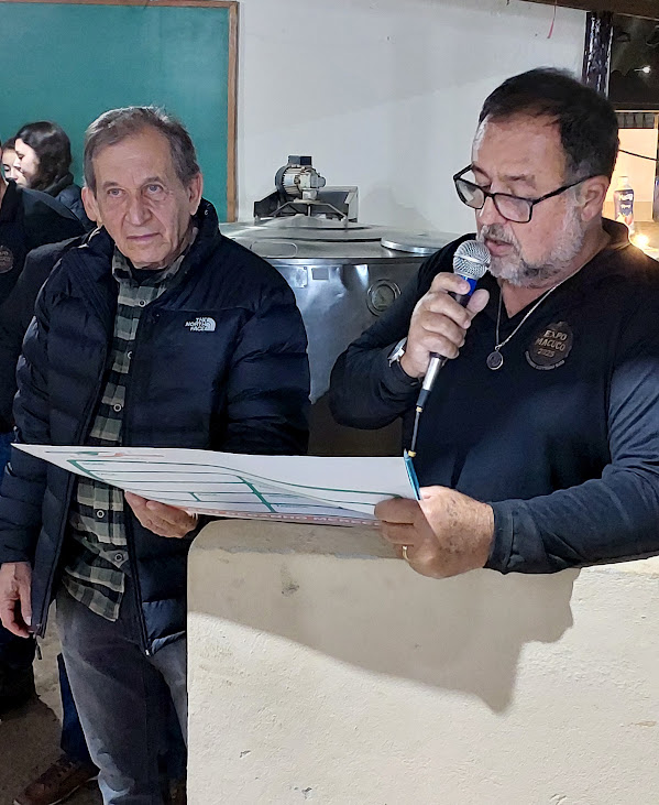 Um dos participantes do Concurso Leiteiro entre Tadeu Erthal e Silvio Marini, presidente e vice da Cooperativa de Macuco