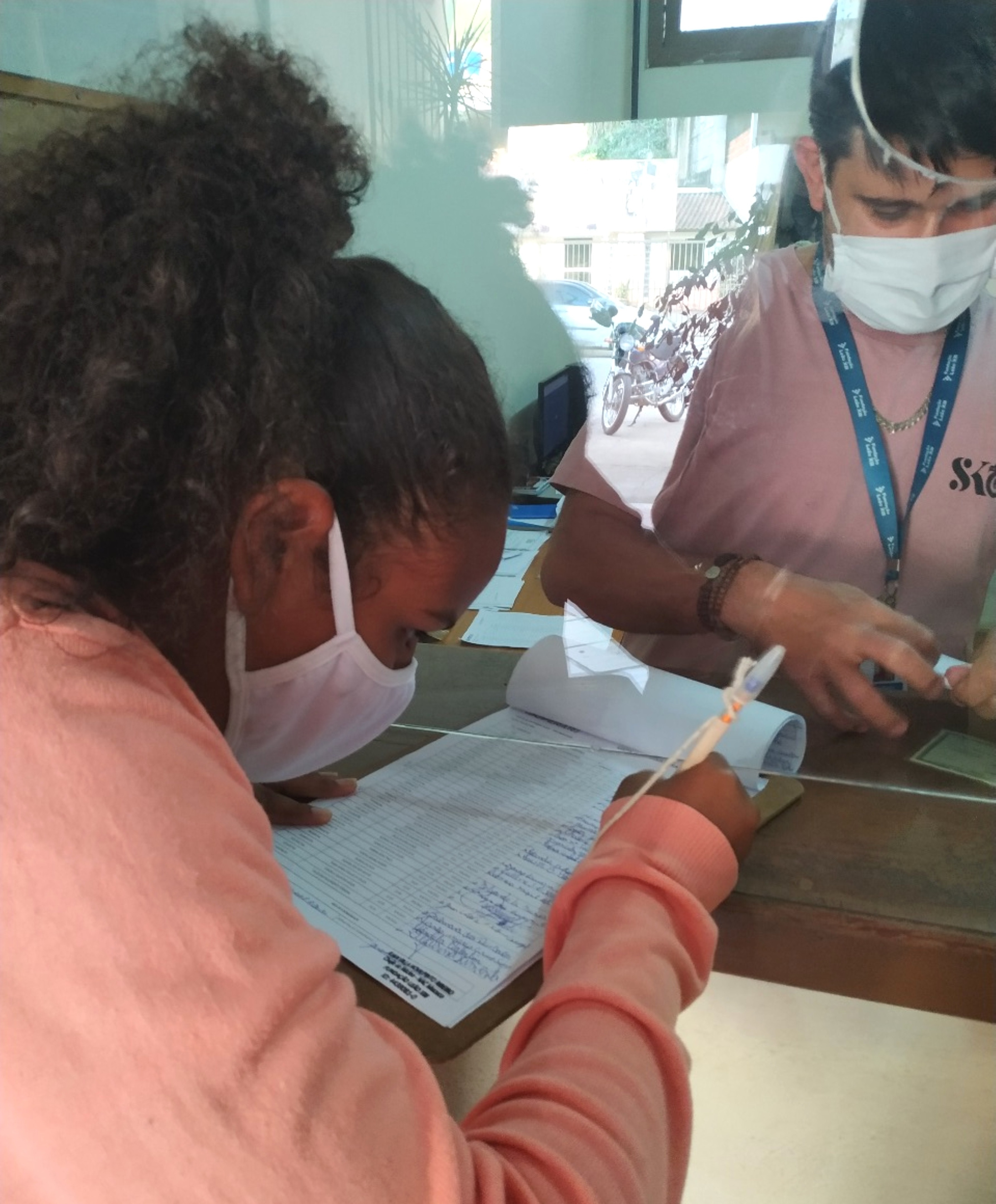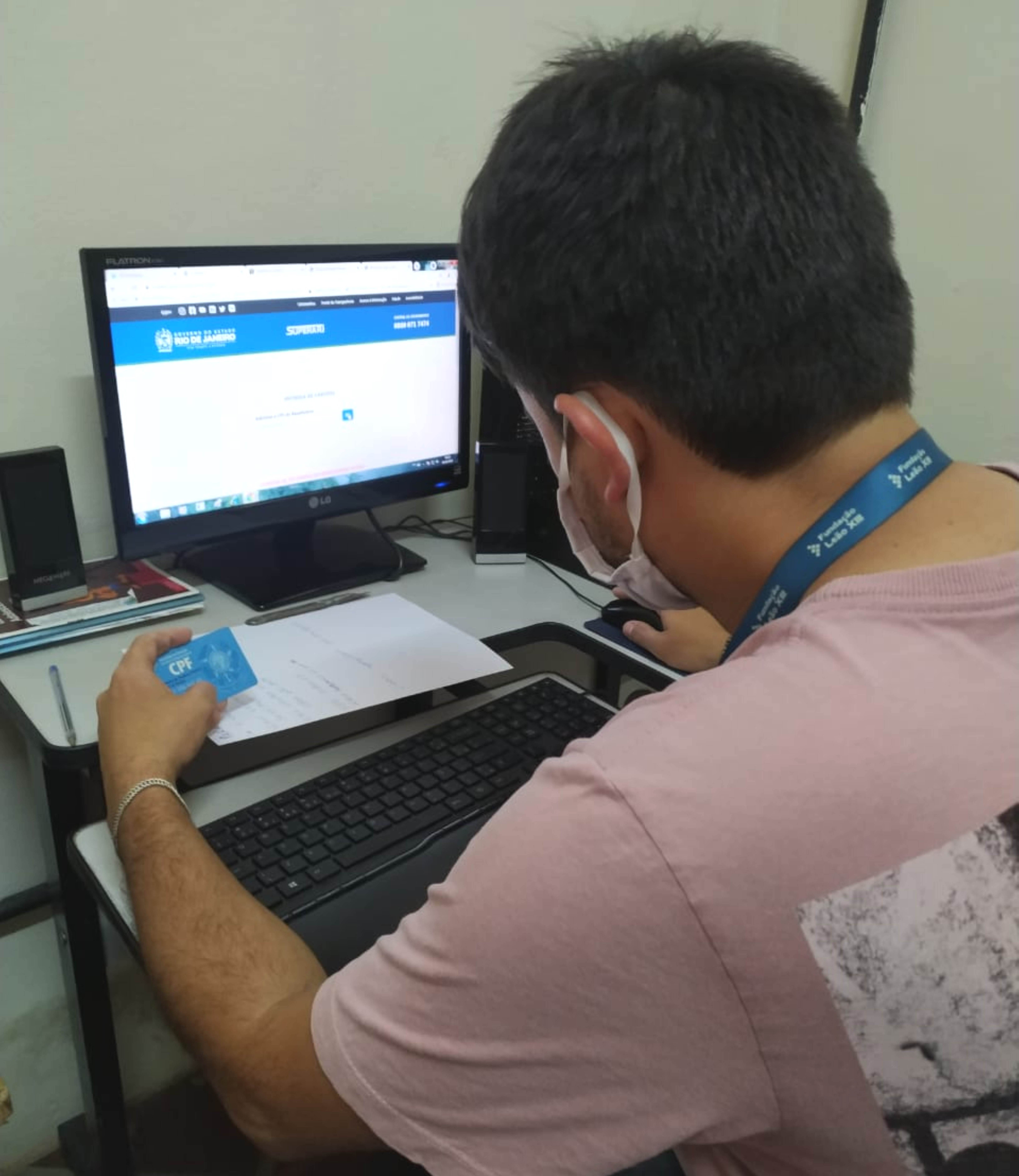 Servidor da Fundação Leão XIII confere o cadastro para entregar o cartão