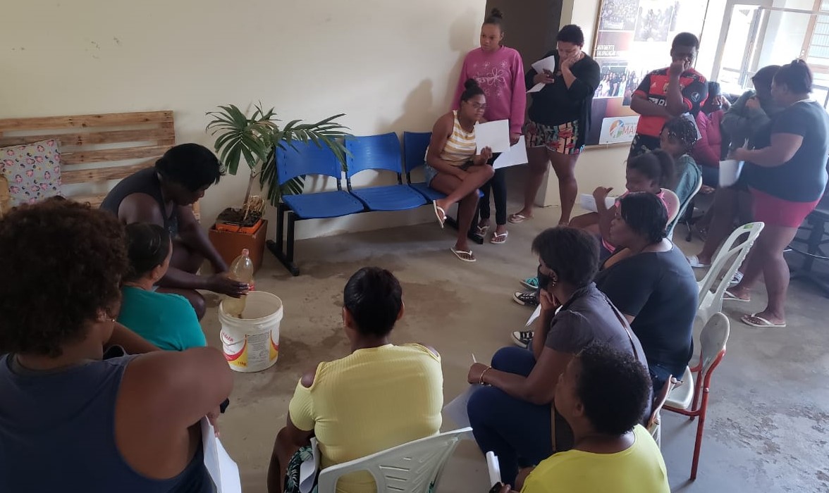 Tendo a supervisão da coordenadora do CRAS, as usuárias acompanham atentas às etapas do processo